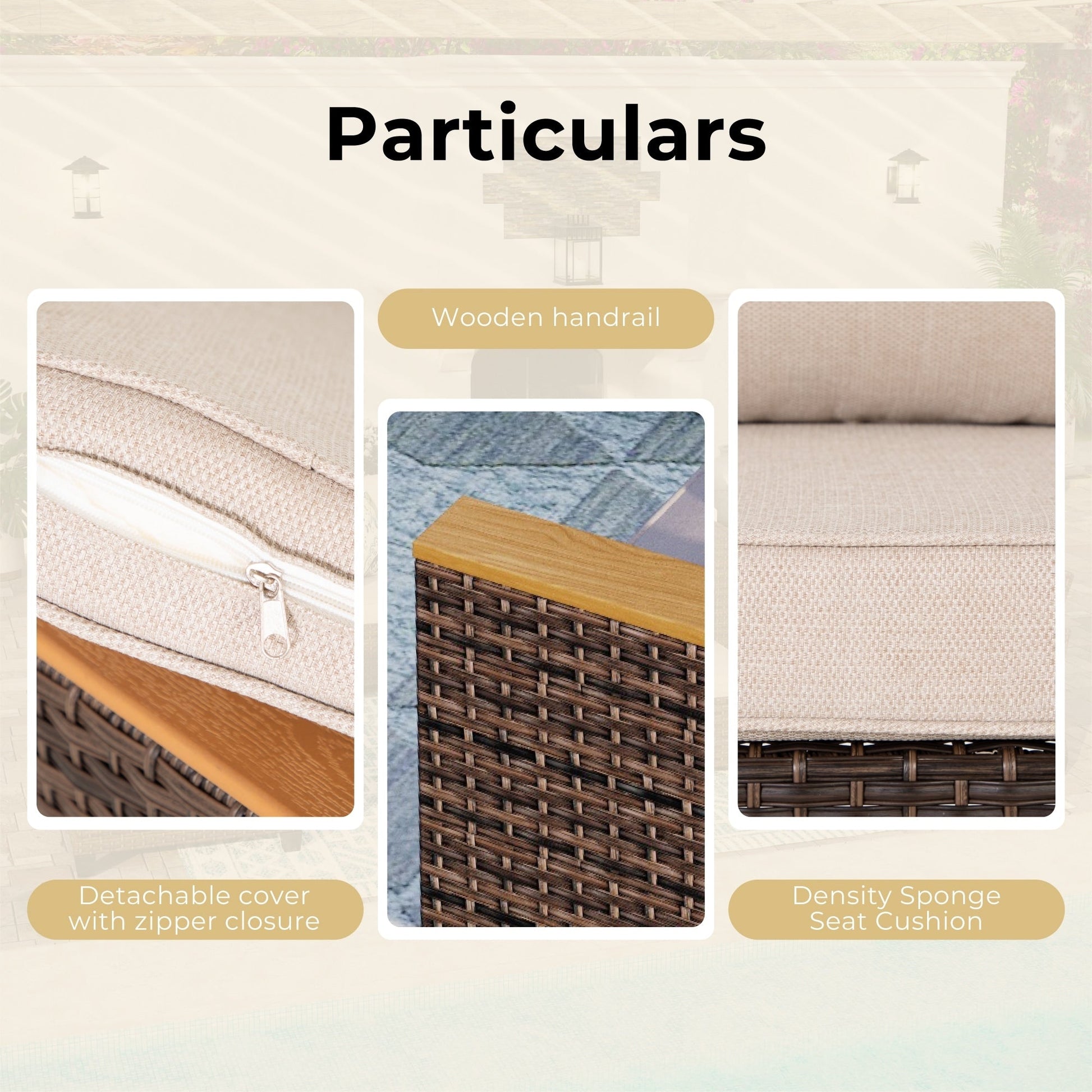 - Color: brown rattan, beige cushion