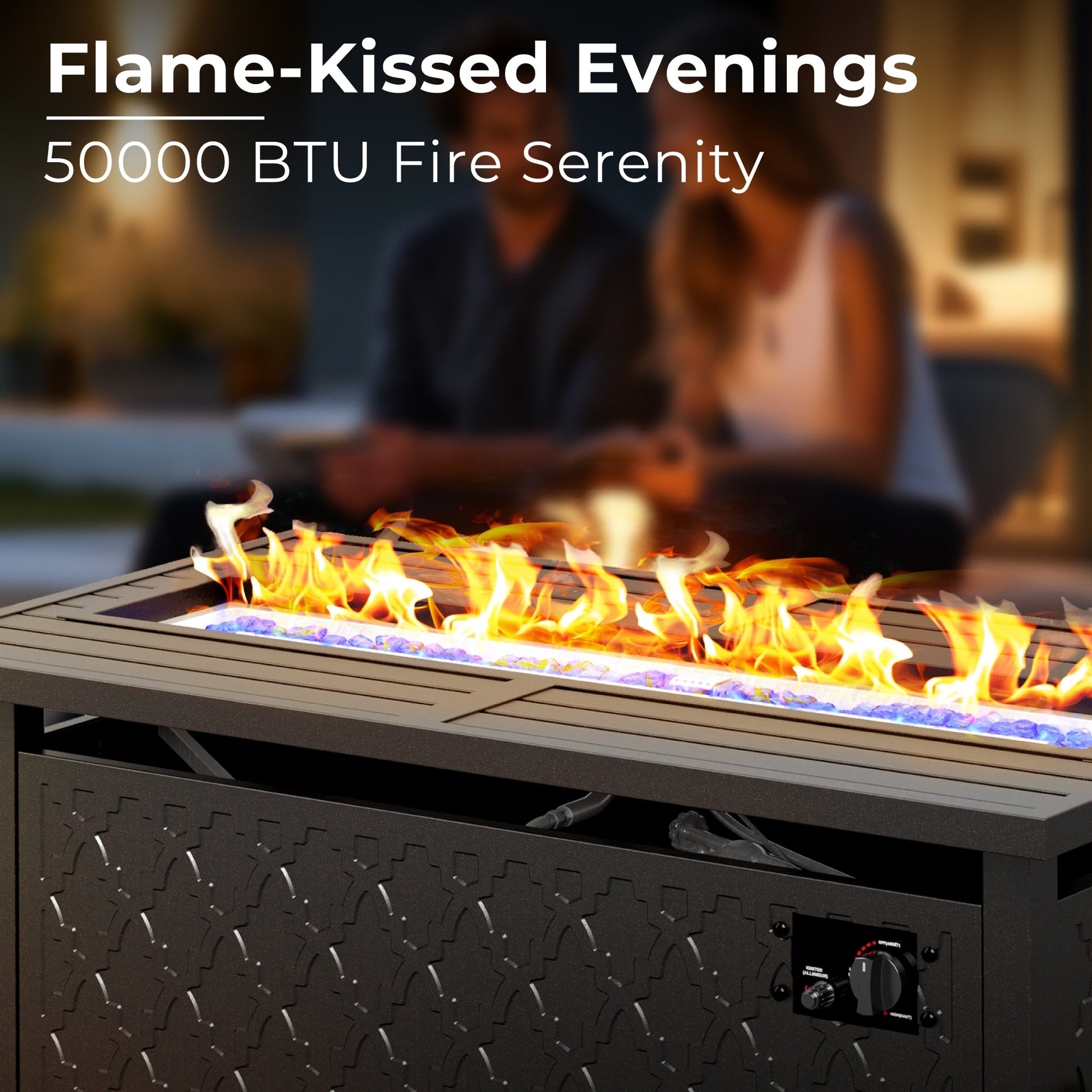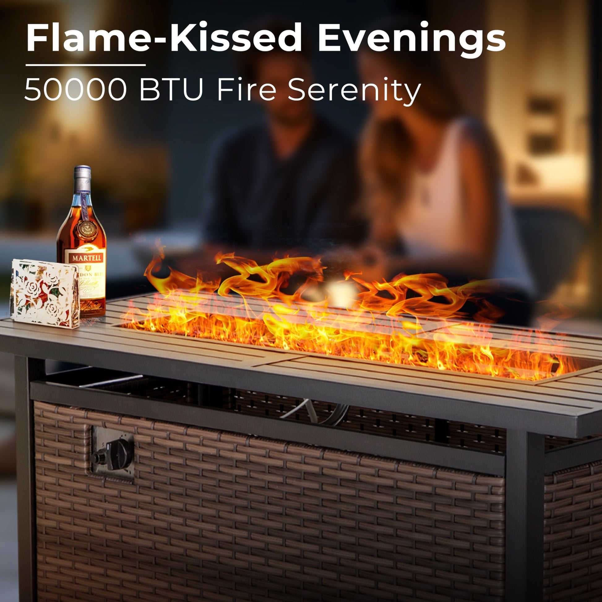 Safe & Warm Bonfire Experience: Outdoor patio conversation set apply 45' rectangular fire pit table, which is CSA certified and provides 50,000 BTU heat output to creat a safe, warm and romantic atmosphere. It is perfect to enjoy the outdoor leisure life with your family. Fire pit table can also be converted into an outdoor dining table by covering the attacthed lid when not use.