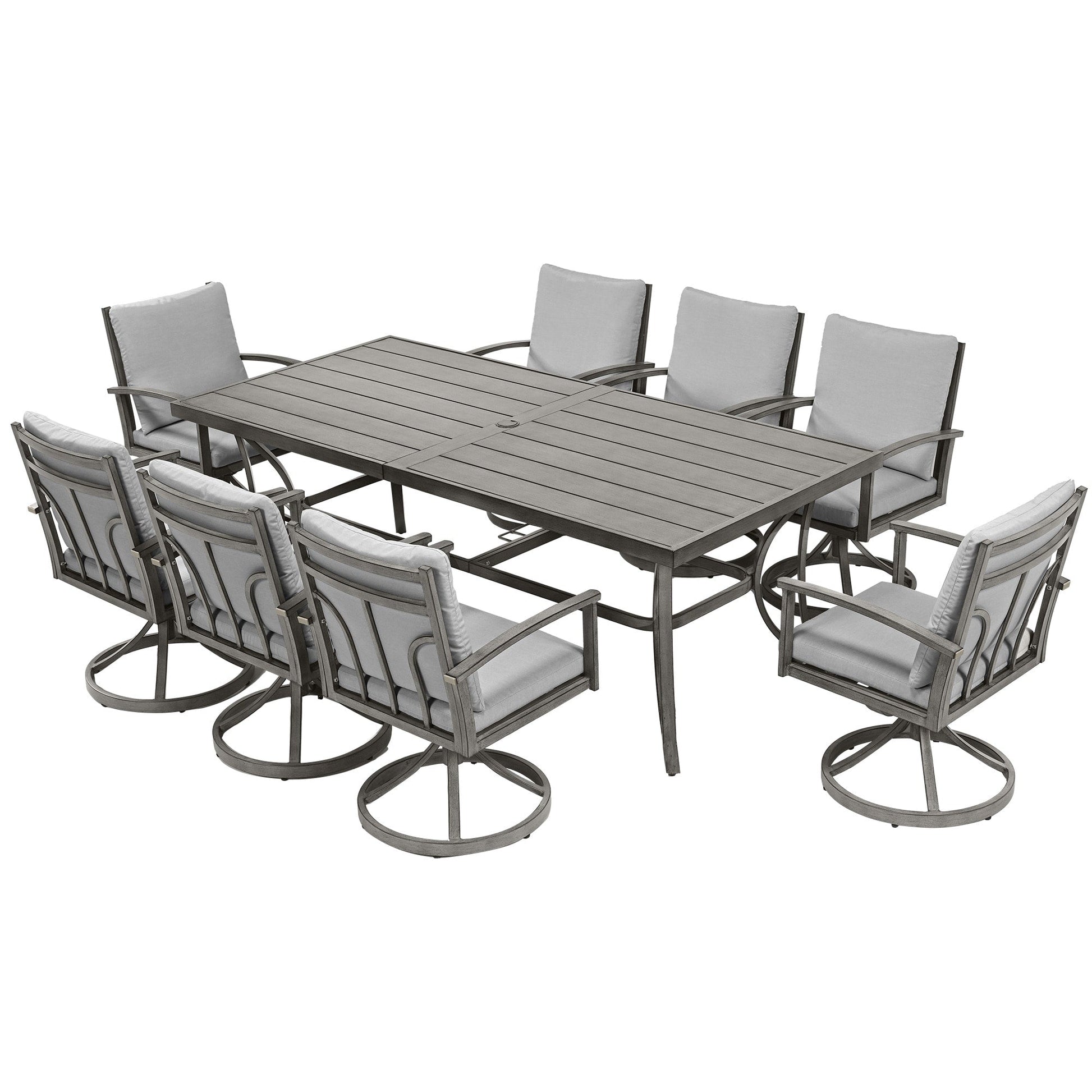 9-Piece Aluminum Patio Dining Set with 8 Swivel Dining Chairs and Washable Cushions