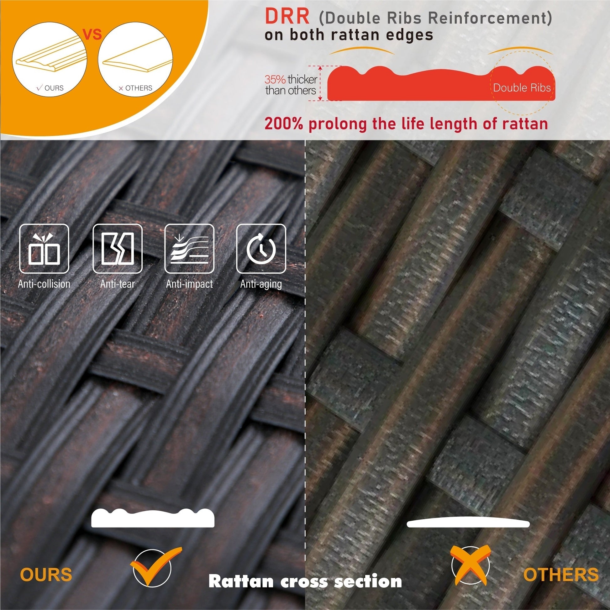 - 【Special Designed Rattan】 Our rattan weaving method is upgraded, which adds more durable and weather resistant. The choice of rattan material is selected. There are locking edges on both sides of rattan weaving, which can prevent damage and improve the service life, also increase the beauty to bring life to your patio. Unlike the other rattan surfaces on the market are smooth, we have adopted the old treatment, the color is very retro, the details of the control make the whole sectional sofa set looks very fashionable and dazzling.