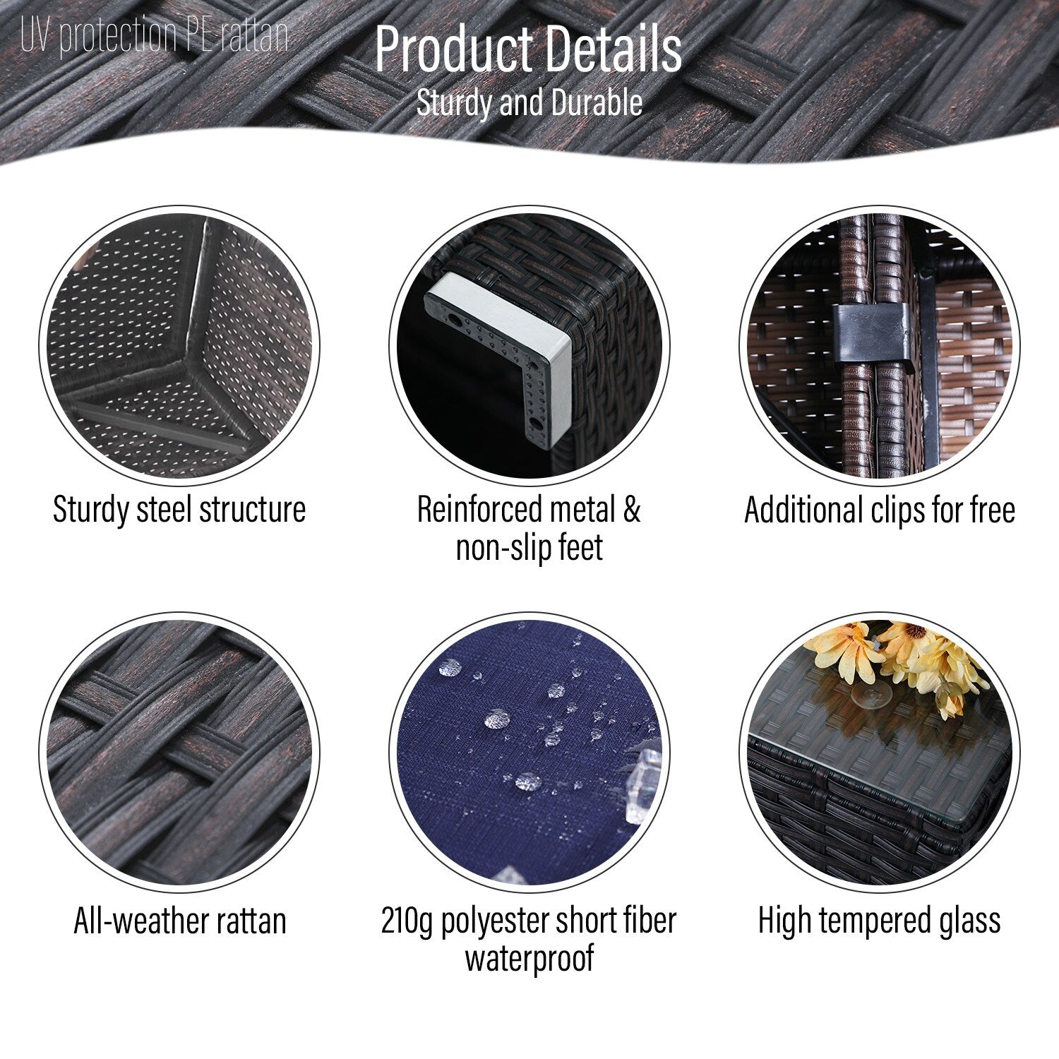 - 【Sturdy & Attractive Wicker Furniture Set】Constructed from strong powder coated steel and all-weather hand woven rattan. This stylish sofa is a great decoration to your patio, deck, backyard porch, or even pool.
