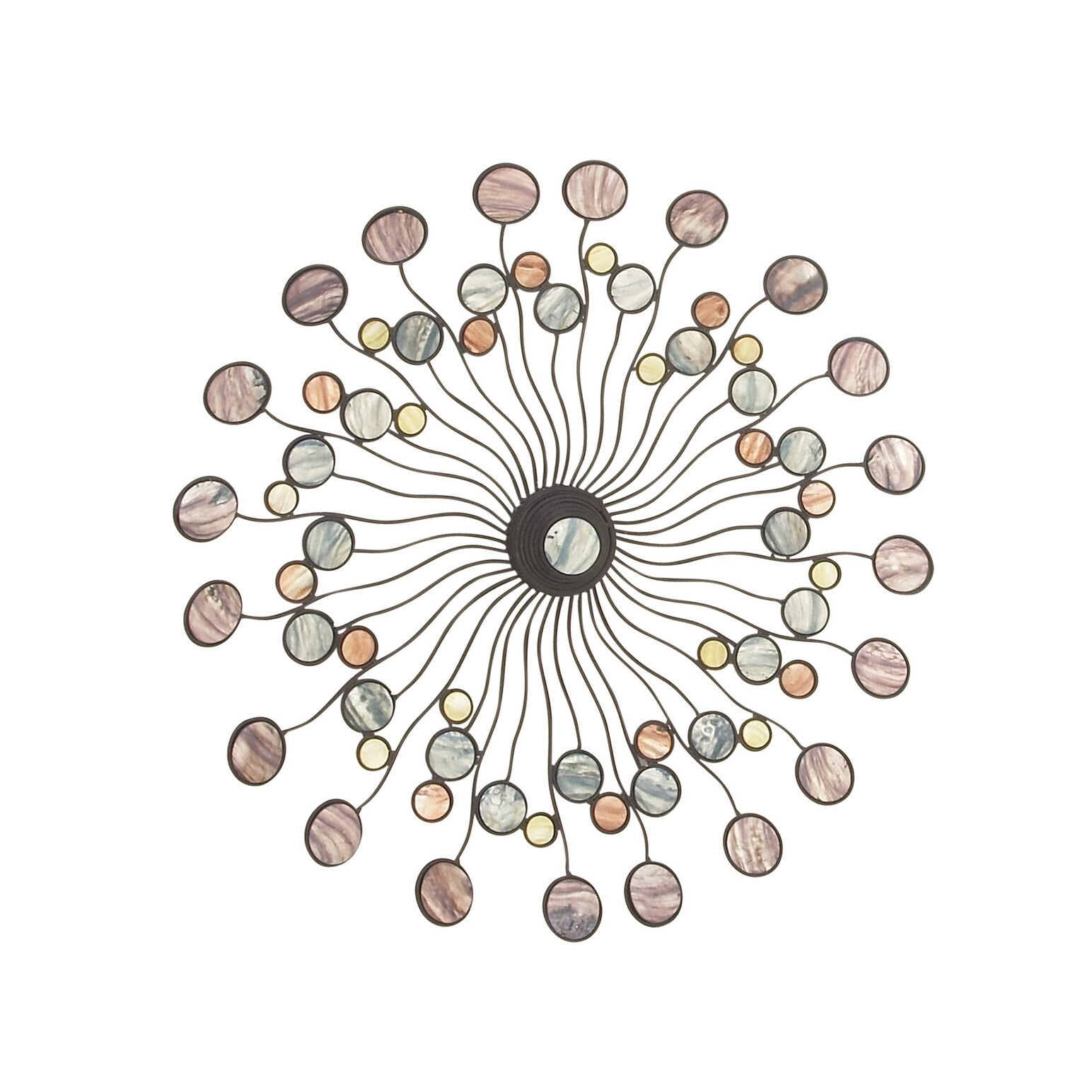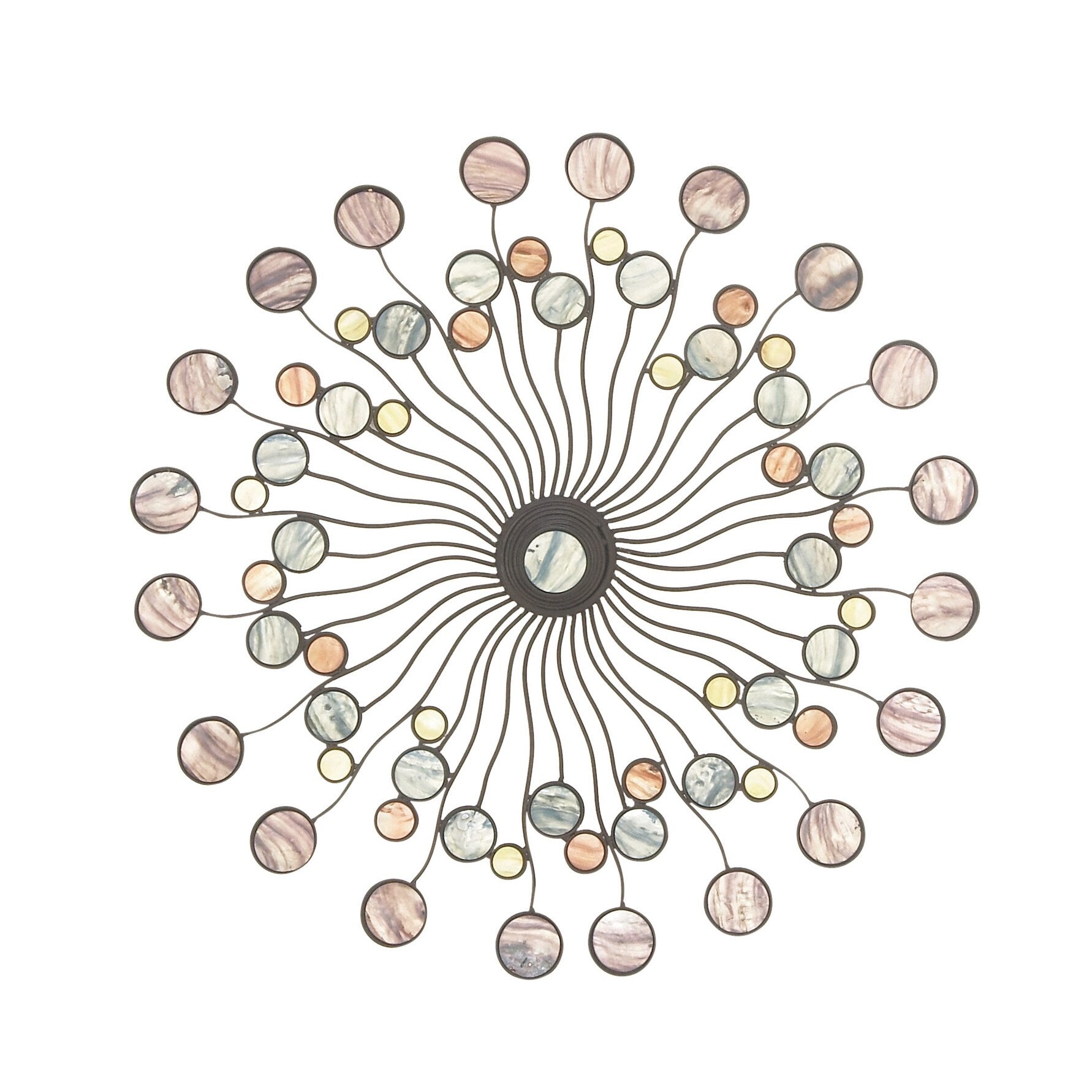 With dark metal waves balanced by neutral shades held in bubbles throughout the frame, this eye-catching wall decor piece makes a bold statement without overwhelming your space. Offering both simplicity and the suggestion of art gallery sensibility, this instant conversation piece is brimming with personality. Its corrosion-resistant frame makes it a breeze to keep dusted and clean.