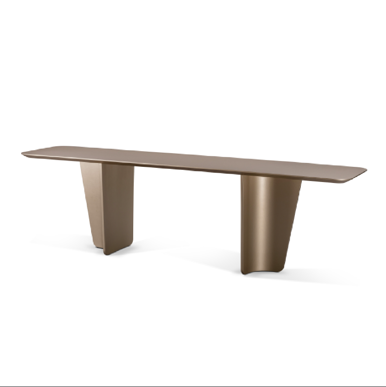 moderne et élégant conception sophistiquée forme XL longue et jambes courbées laque métallique mate urano plateau en verre de couleur urano plateau en verre fumé |