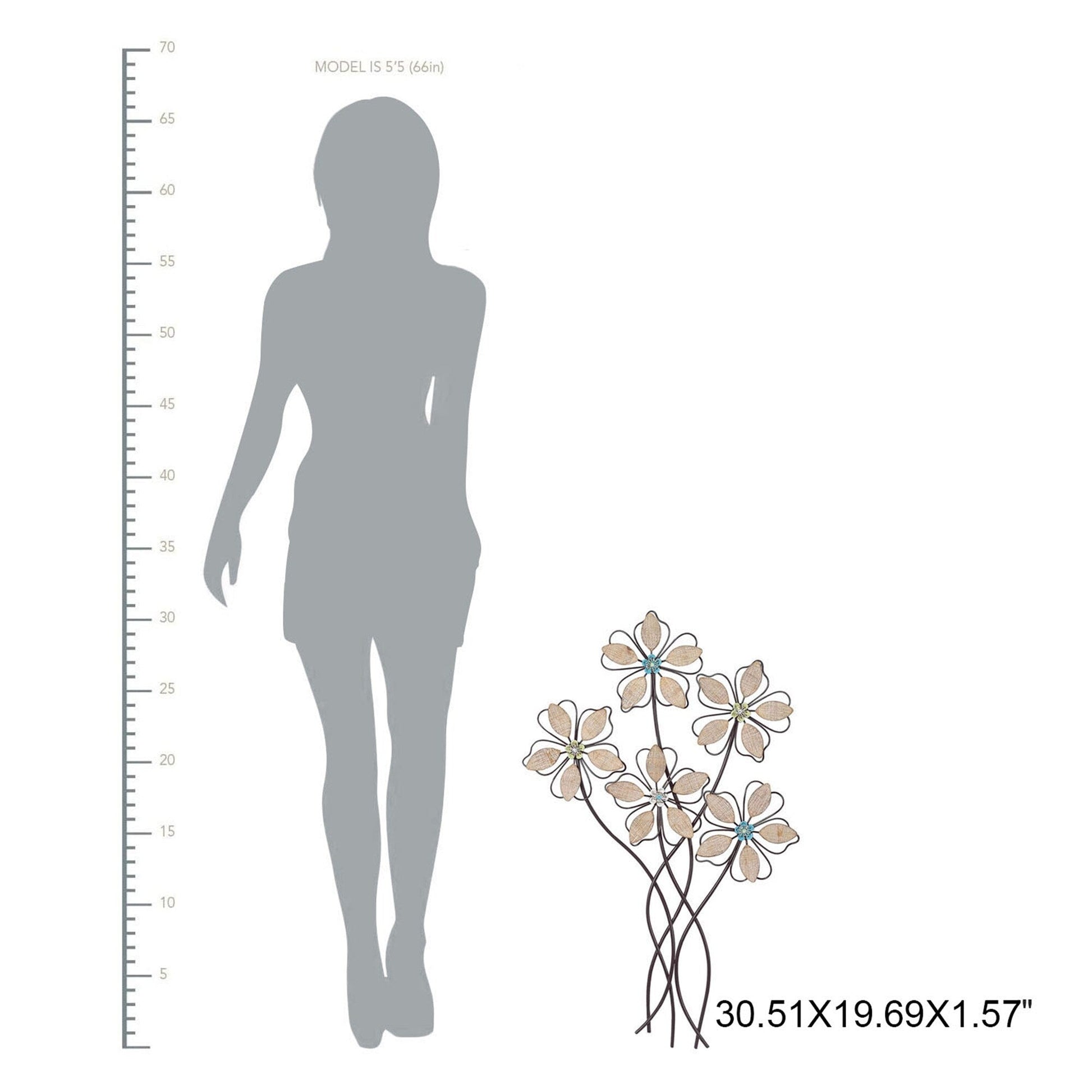 Adeco Metal Wall Decor Wall Hanging Sculptures with 5 Flowers