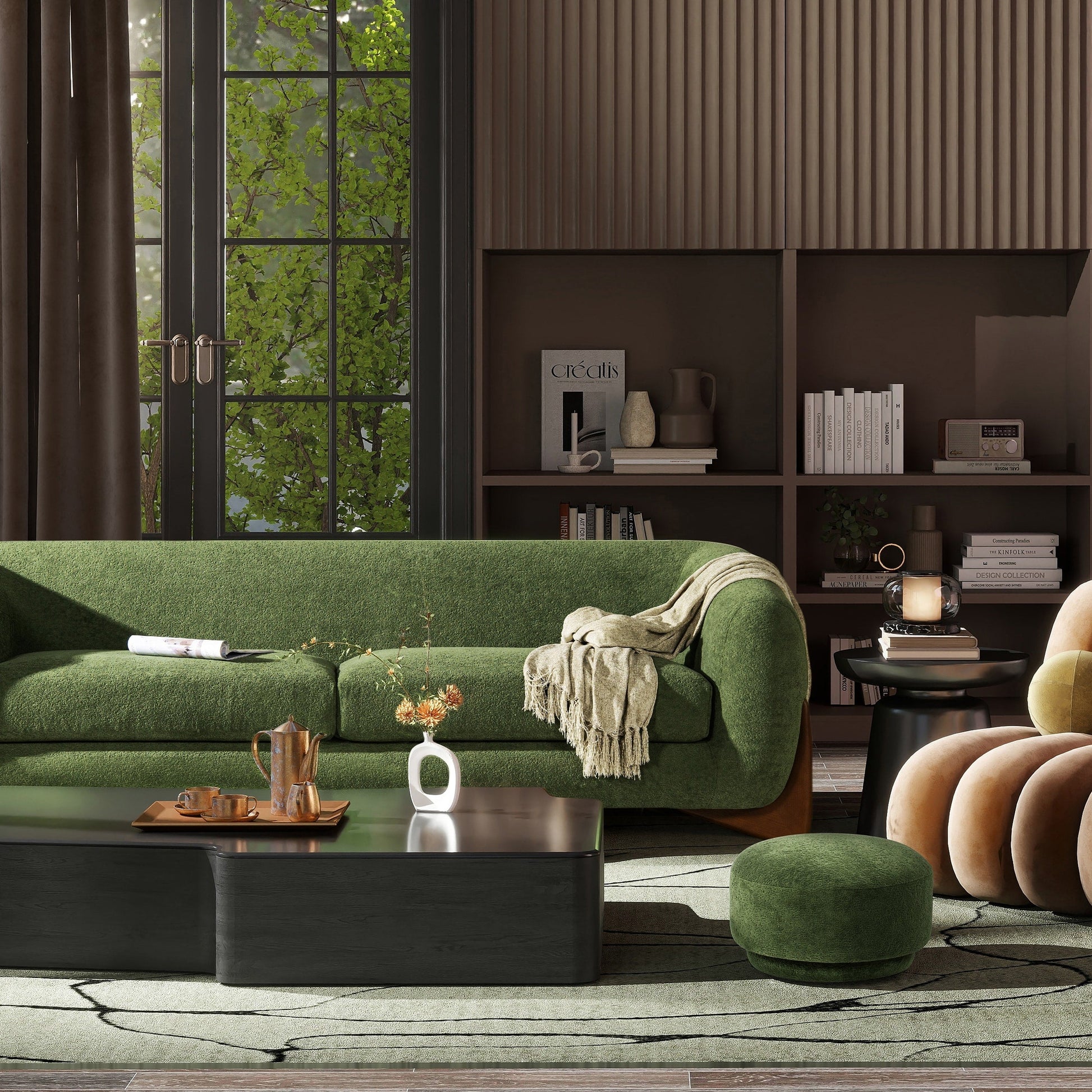 - Faux sherpa textured bouclé or fleeced teddy upholstery with a dimensional nubby tweed texture