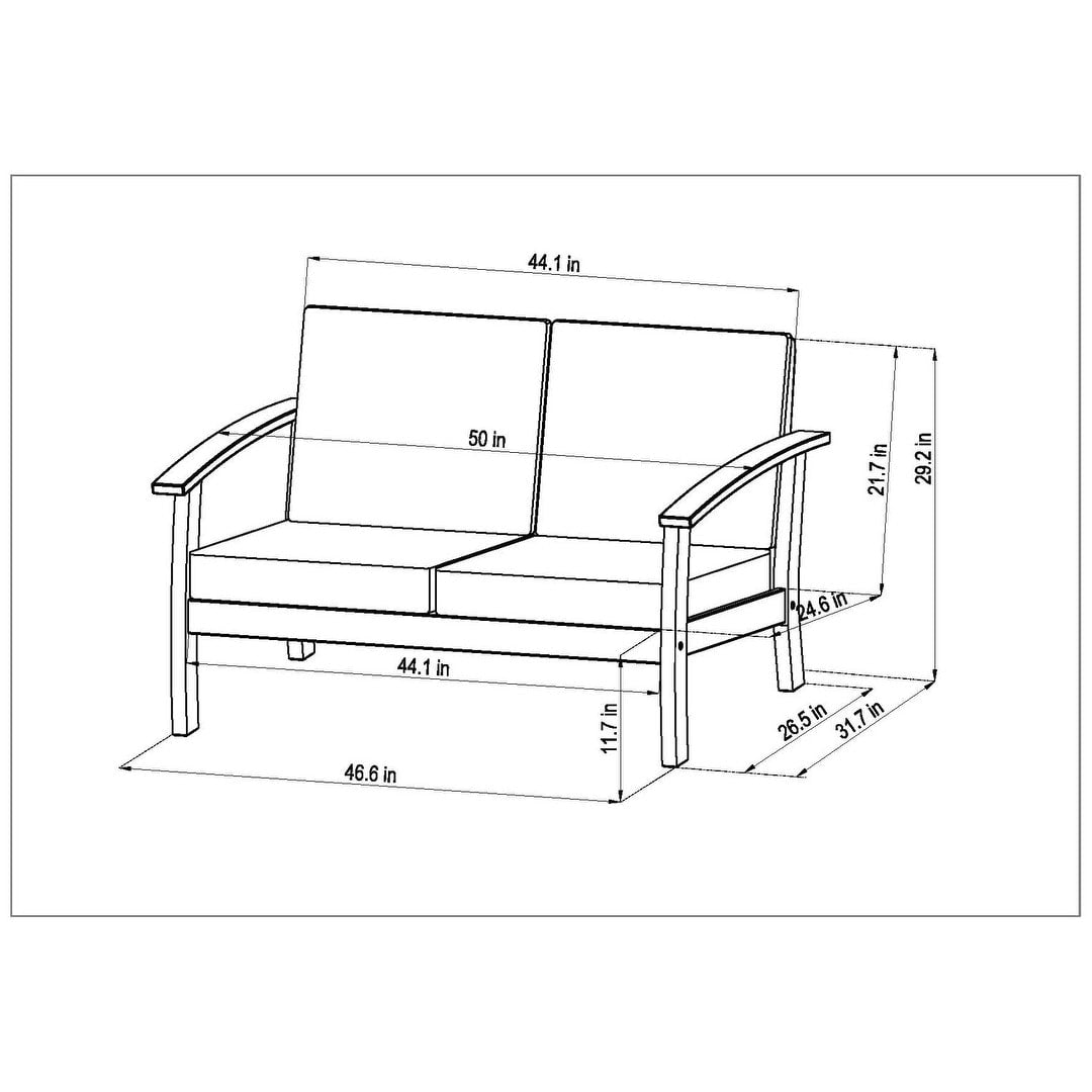 - Loveseat dimensions: 50'L x 31.7'W x 29.2'H, seat dimensions: 44.1'L x 24.6'W x 11.7'H
