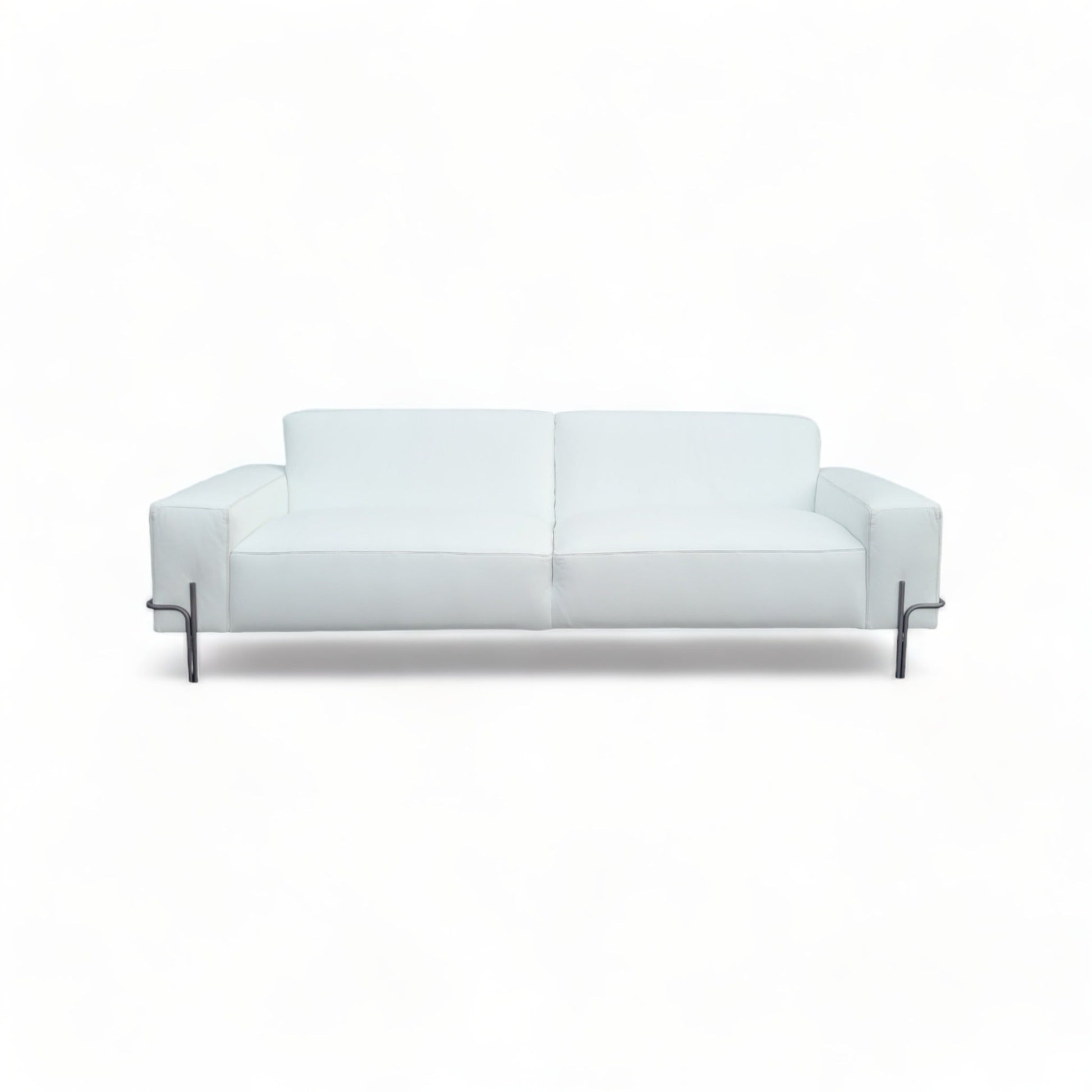 Le canapé en cuir blanc Anis offre un design élégant et moderne pour le salon. Ses lignes épurées et sa grande assise, entièrement recouverte de cuir blanc, lui confèrent un style unique. Sa structure repose sur des pieds en métal finition graphite.
