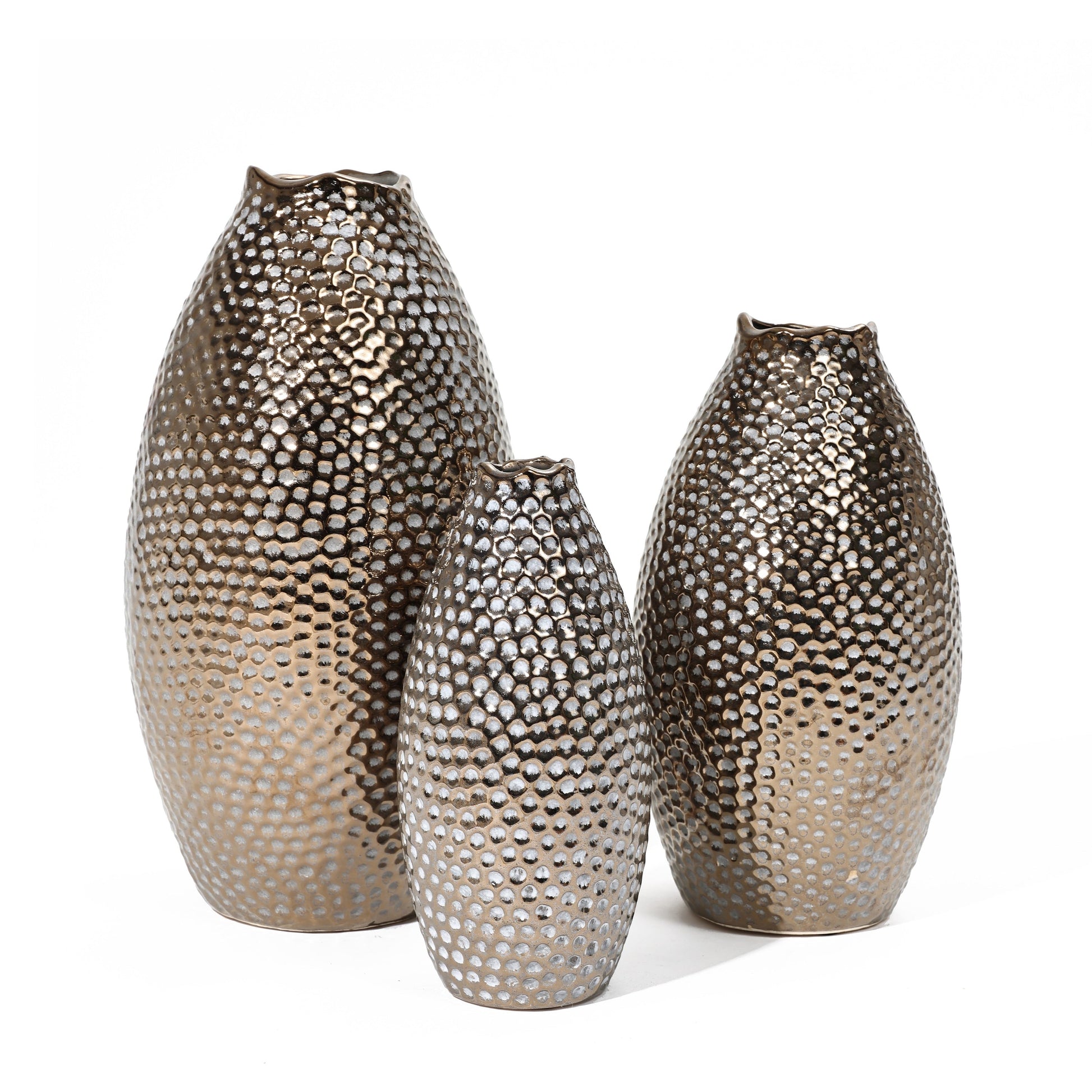 Looking for a perfect vase to add a touch of elegance to your home decor? Look no further than the stoneware vase! This masterpiece is made of stoneware with a gold glaze, and its handcrafted, dimpled surface brings a contemporary elegance to any room. Designed to be robust and chip-resistant, this vase is perfect for indoor ambiance and serenity. Whether you choose to display it as a cohesive collection or as an individual accent piece, this vase adds a luxurious touch to console tables and shelves. Get your hands on this vase today and turn your home into a luxurious paradise!