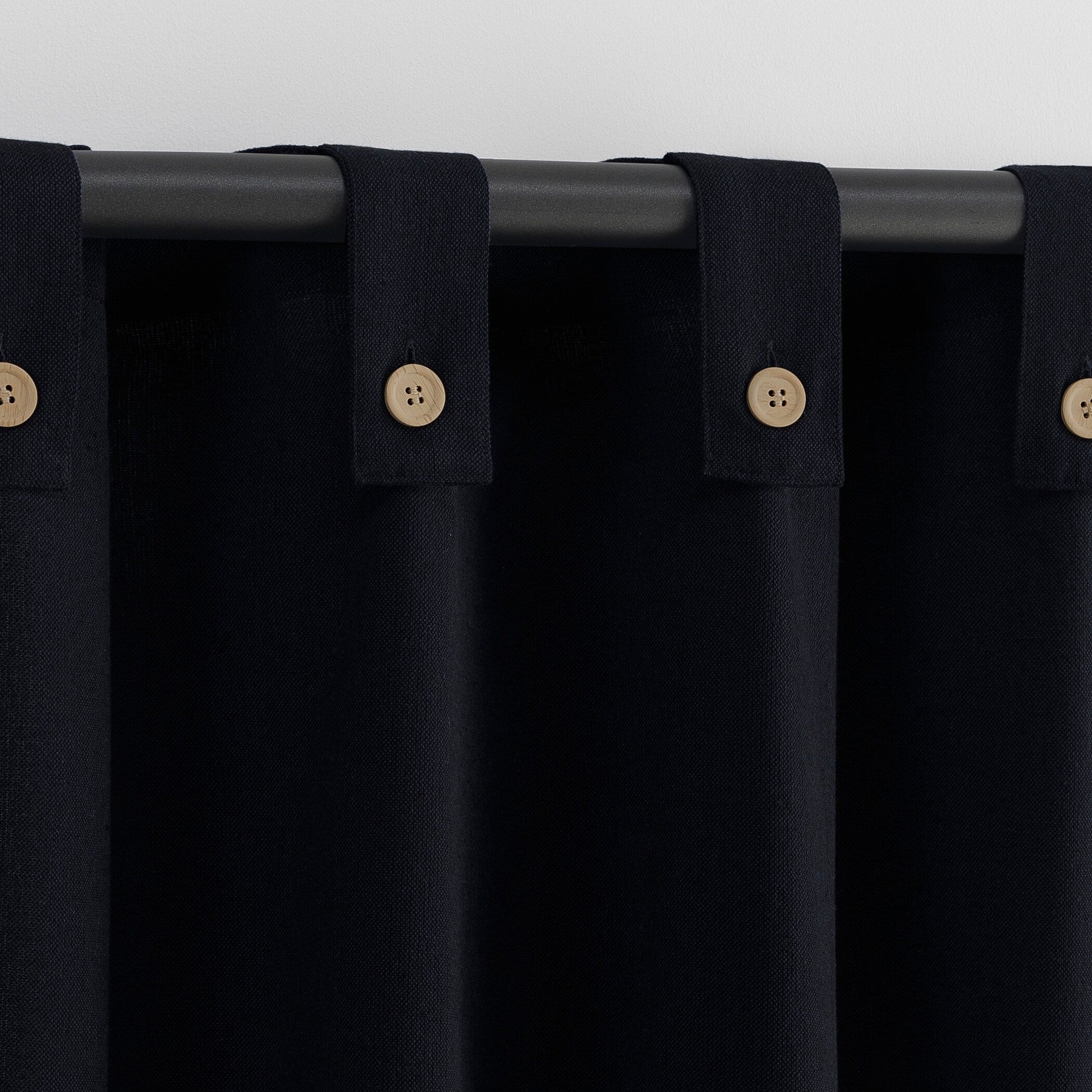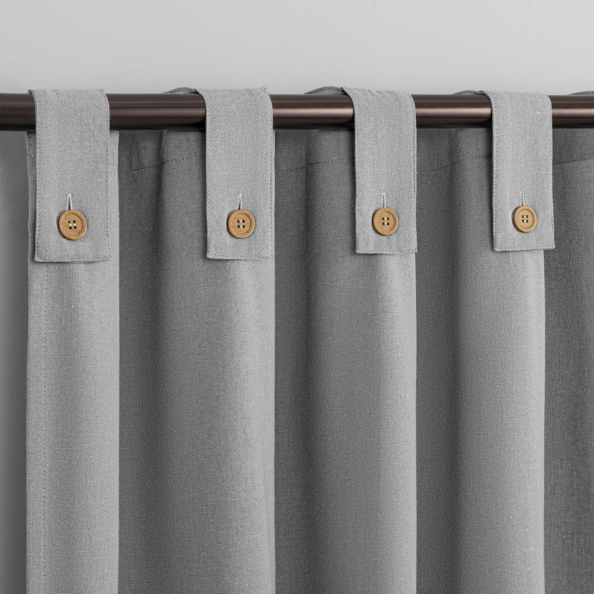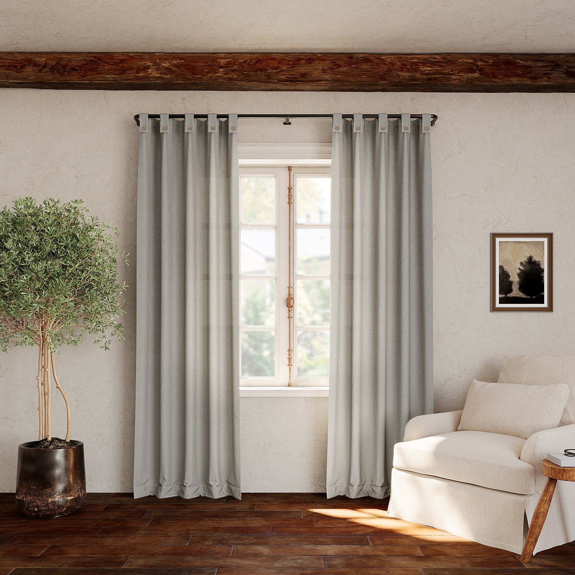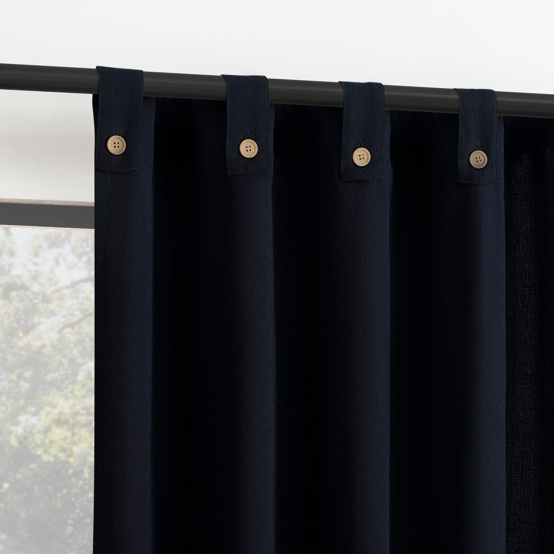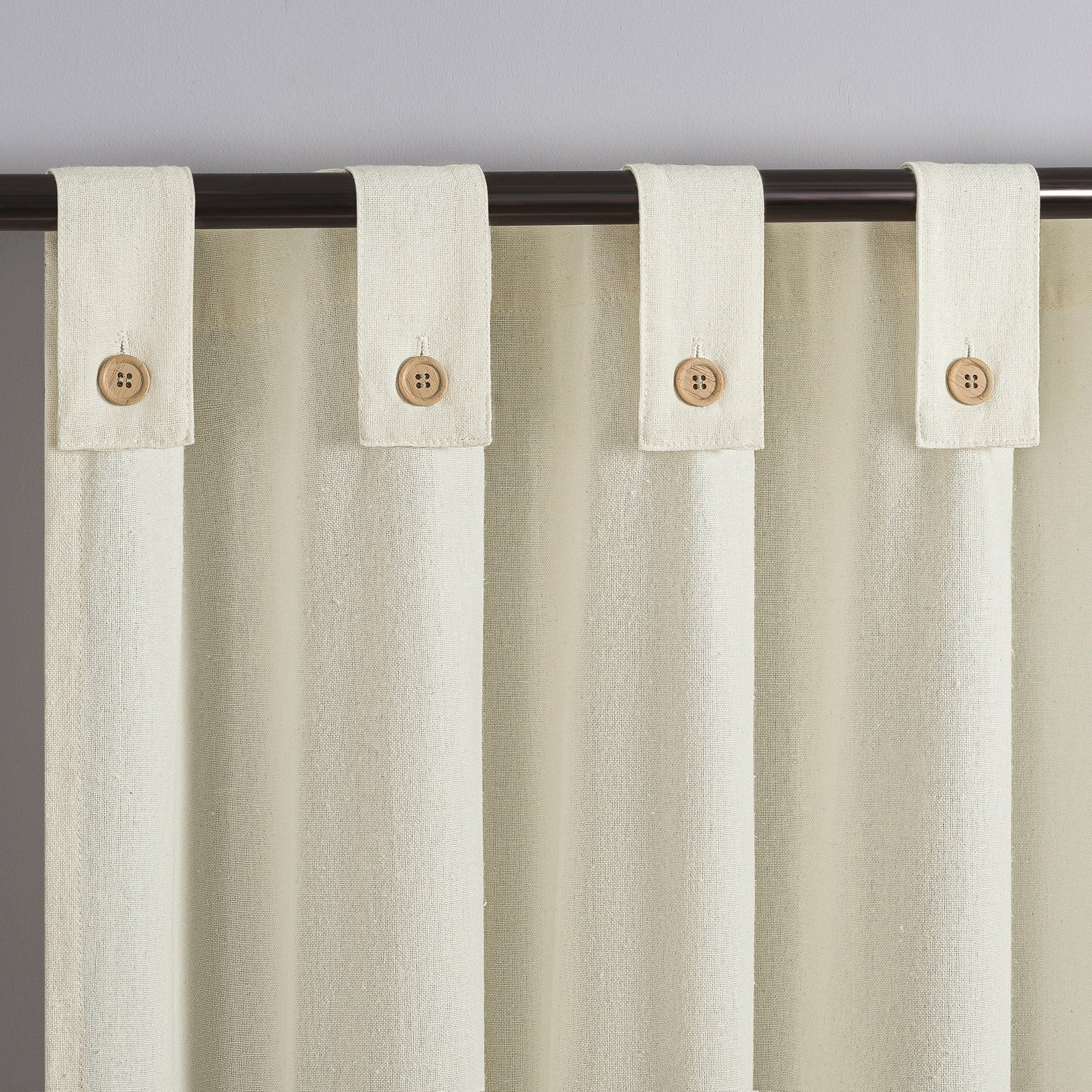 A washed cotton blend fabric embellished with button closure tabs, the Curtain Panel from Archaeo brings next-level design detail to your windows. The natural worn texture semi-sheer fabric gently filters light while enhancing privacy. Dress it up with another Archaeo curtain on a double rod, or keep it casual as a standalone curtain. Tab top design allows for simple slide-through installation on curtain rods up to 1 ½” in diameter. Sold as individual panels. Measure carefully before selecting your desired size and quantity.