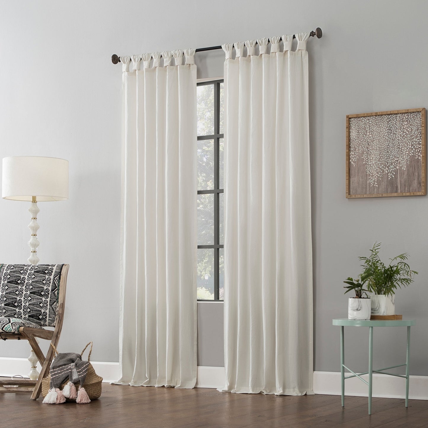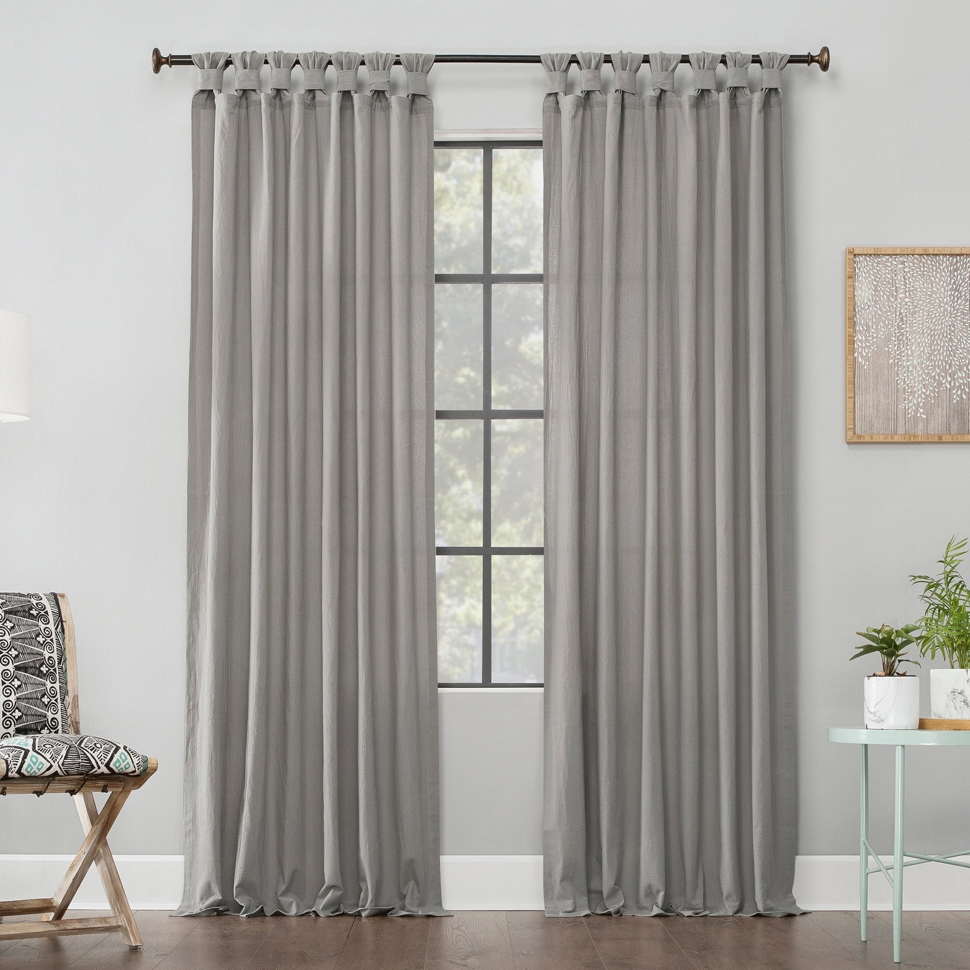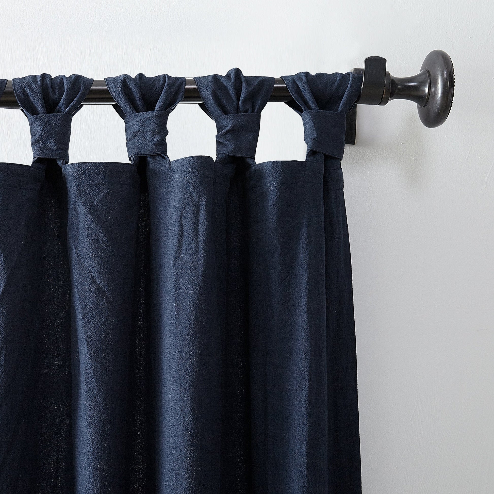 This handsome cotton curtain is classic good looks with a twist. Curtain Panels from Archaeo add personality with a unique twist tab top design reminiscent of the classic bow tie. The washed texture semi-sheer 100% cotton fabric gently filters light while enhancing privacy. Tab top design allows for simple slide-through installation on curtain rods up to 1 ½' in diameter.