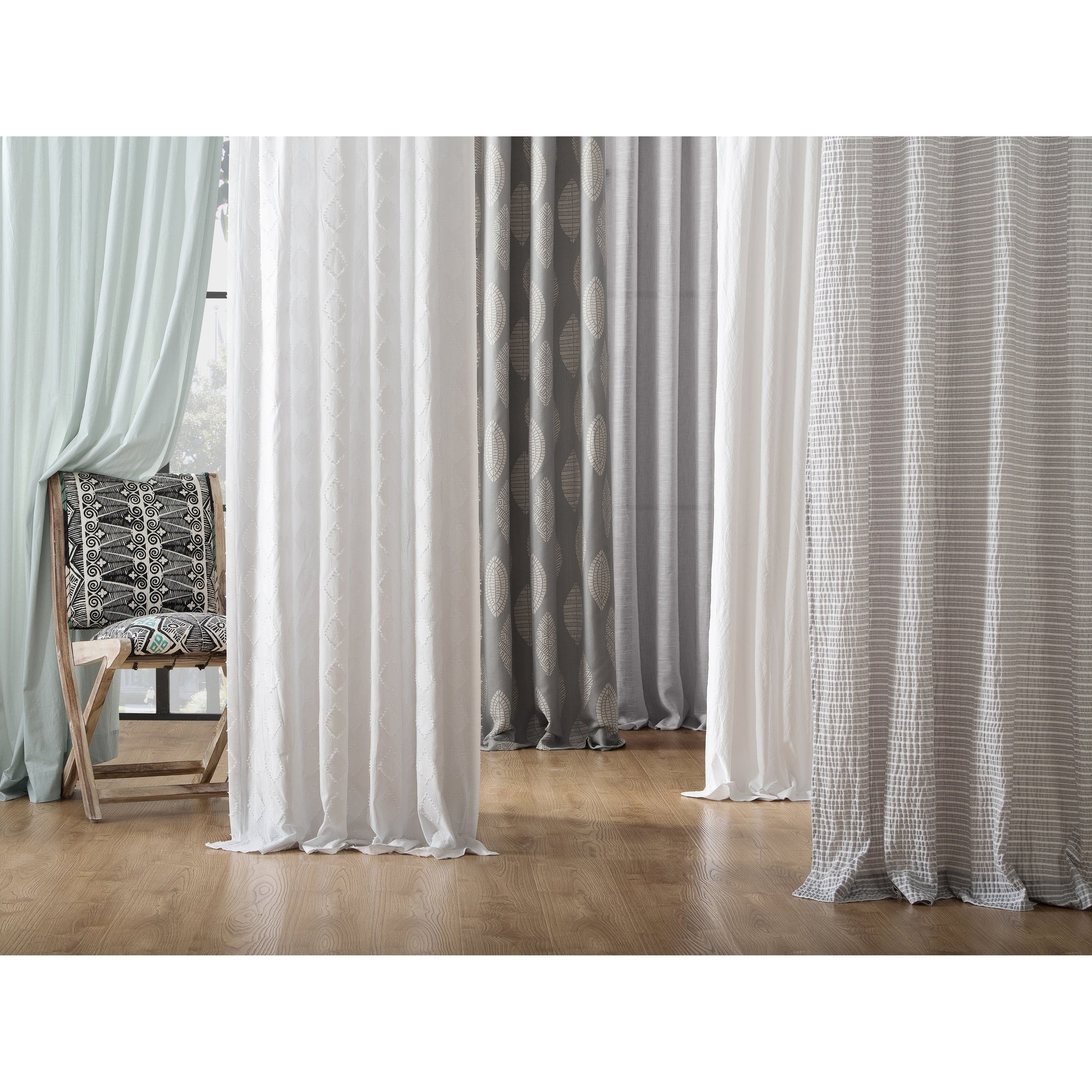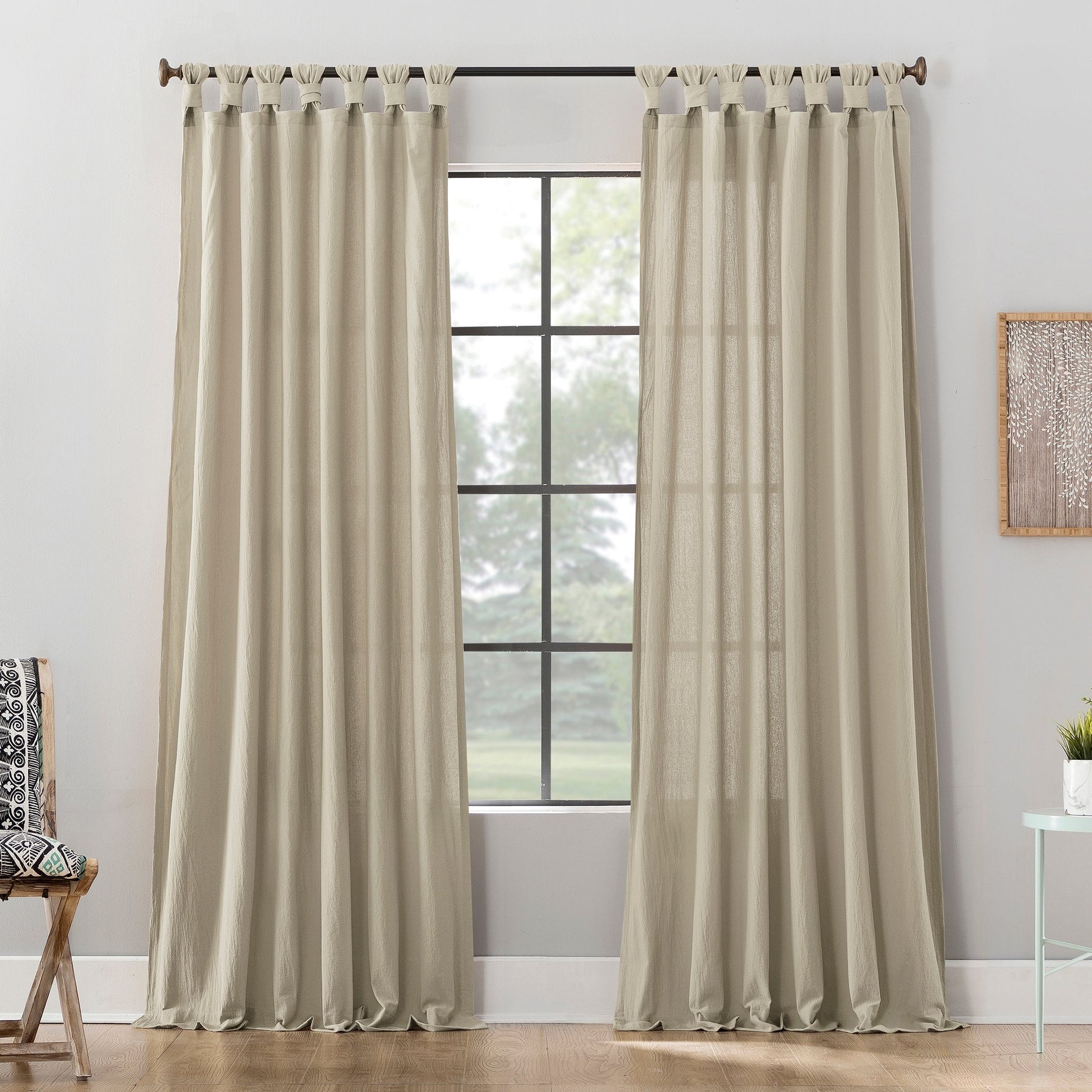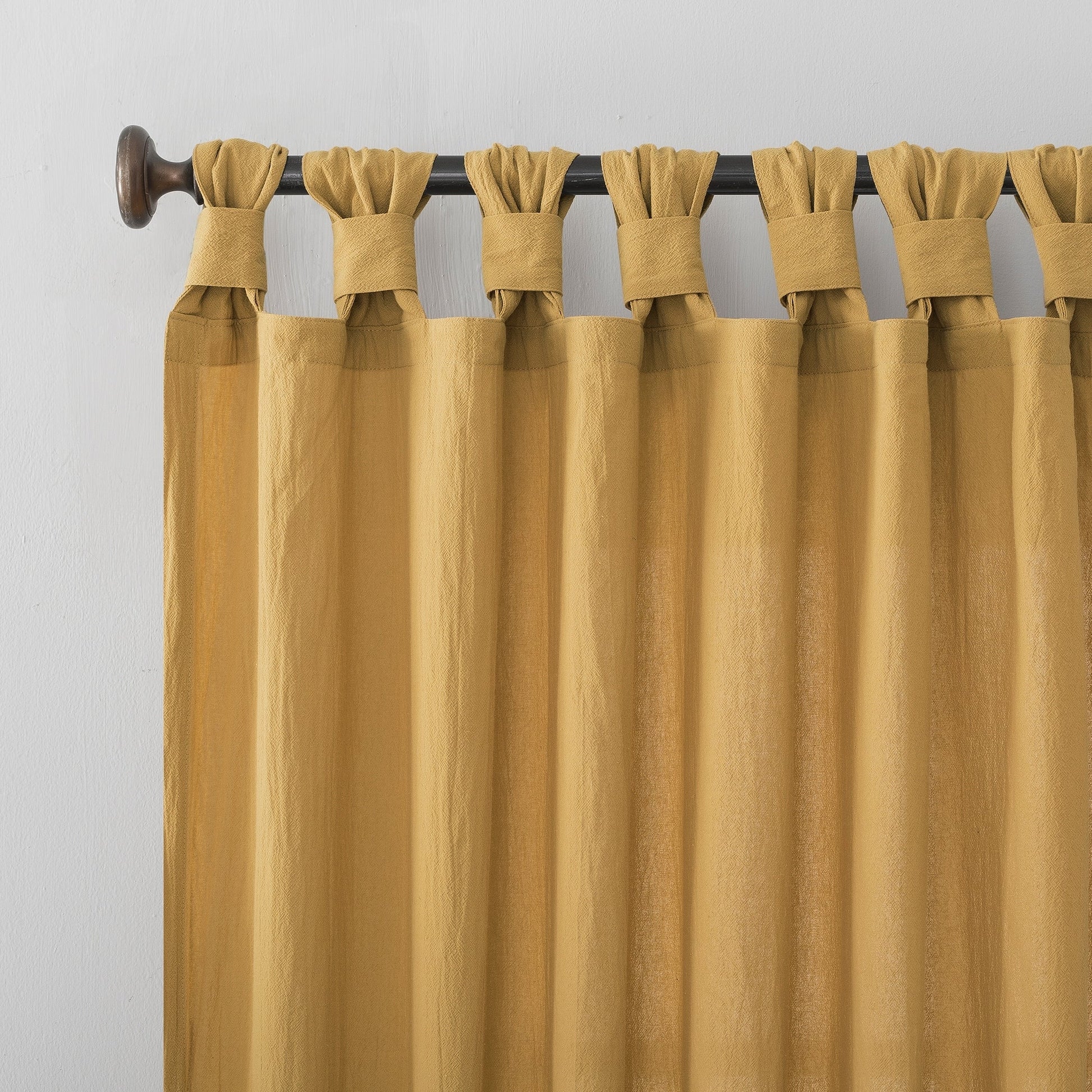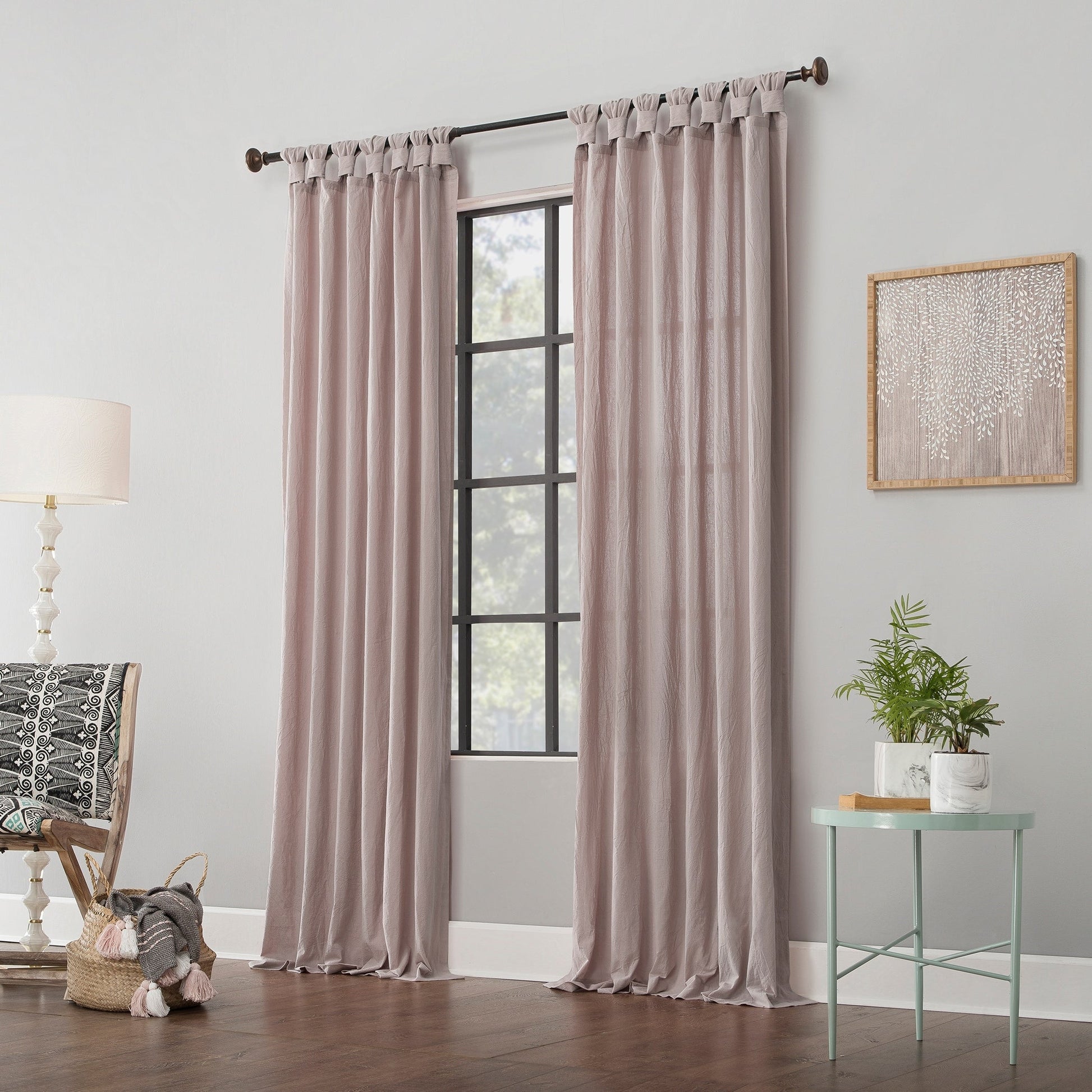 This handsome cotton curtain is classic good looks with a twist. Curtain Panels from Archaeo add personality with a unique twist tab top design reminiscent of the classic bow tie. The washed texture semi-sheer 100% cotton fabric gently filters light while enhancing privacy. Tab top design allows for simple slide-through installation on curtain rods up to 1 ½' in diameter.