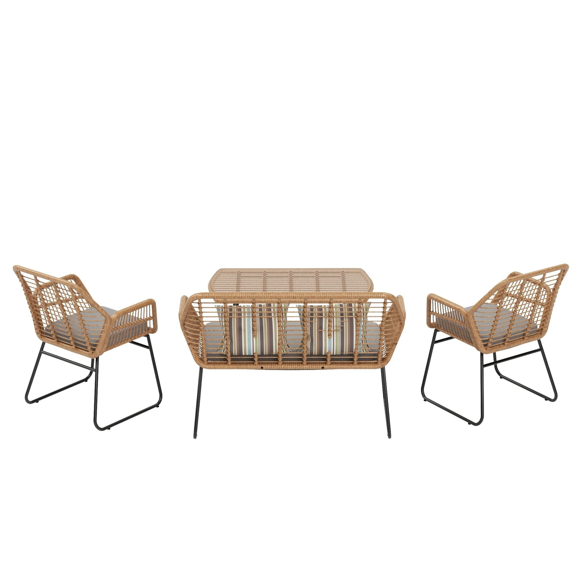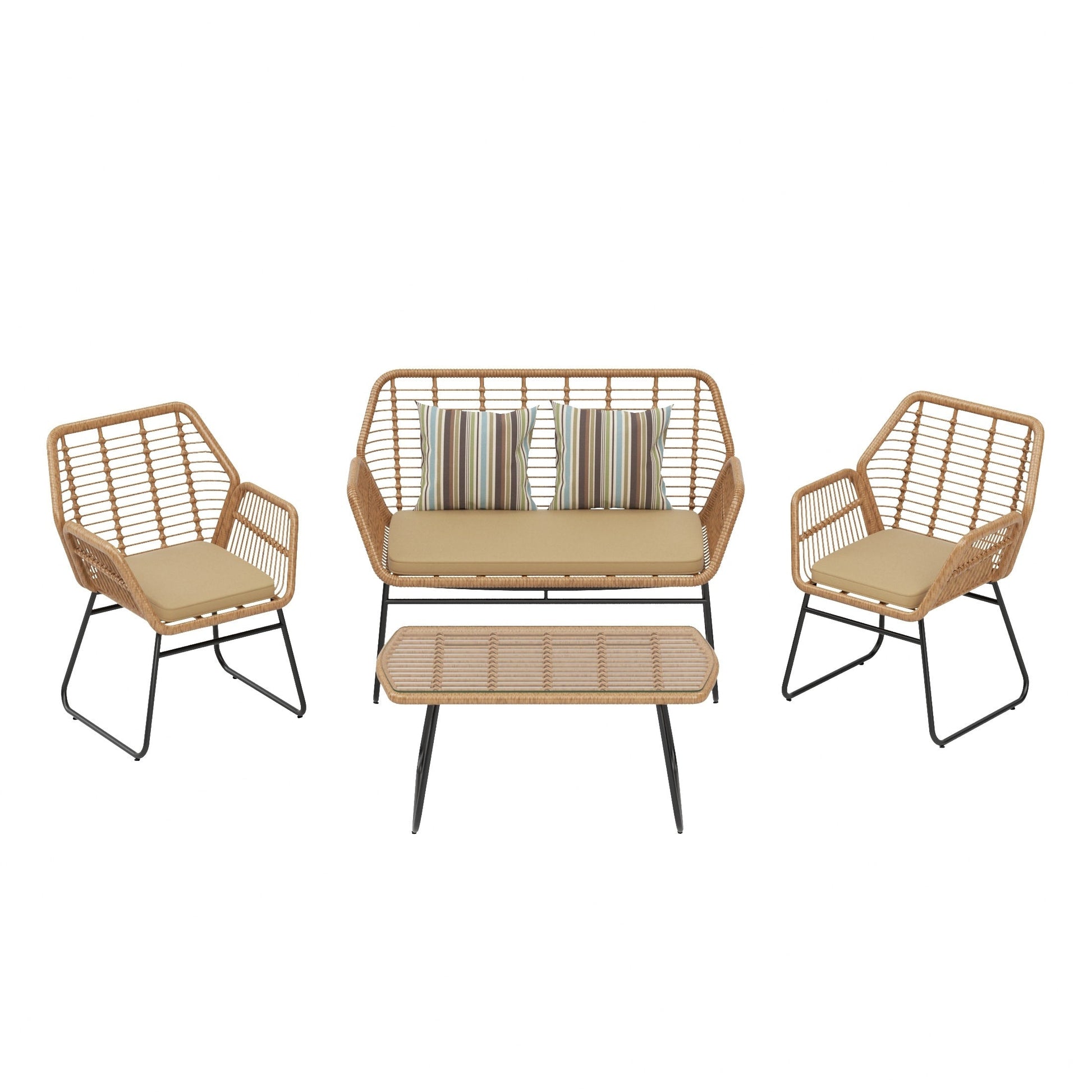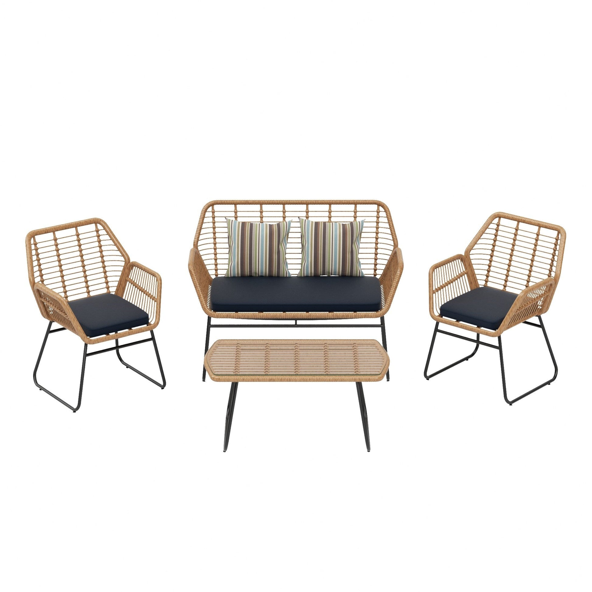 Arden 4-Piece Outdoor Wicker Patio Conversation Set with Cushions