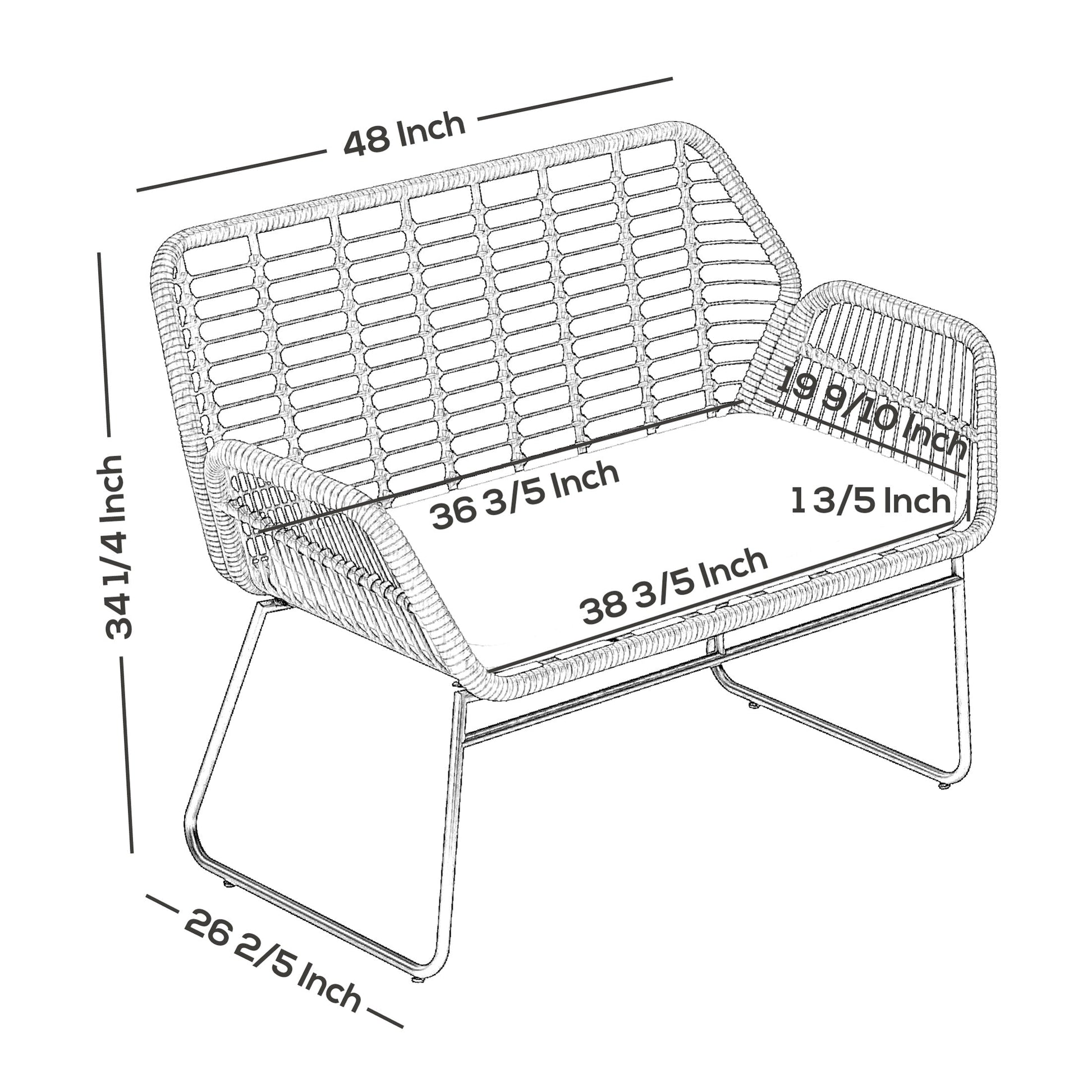 This seating group combines natural textures with contemporary lines and curves, which creates the perfect getaway. This set comes with a loveseat, two club chairs, and a matching, shared coffee table. The loveseat and club chairs cradle you with a rope woven over a sturdy steel frame. Comfortable cushion padding ensures a comfortable seating experience, which allow you and your guests to enjoy each others' company. ?This gorgeous piece is UV and water resistant for long lasting durability and the best part is minimal maintenance required.