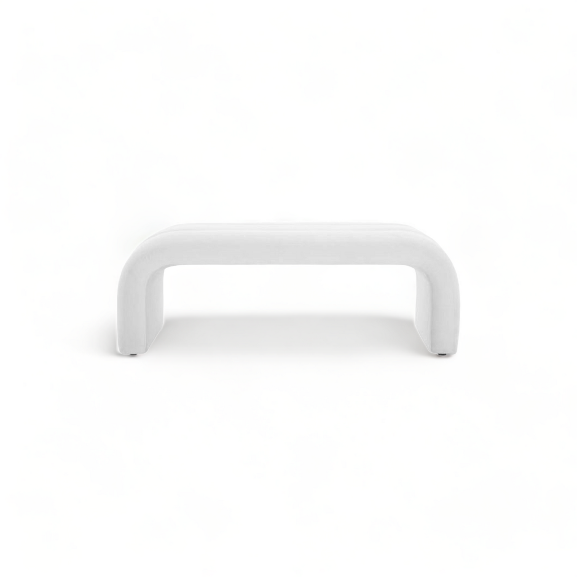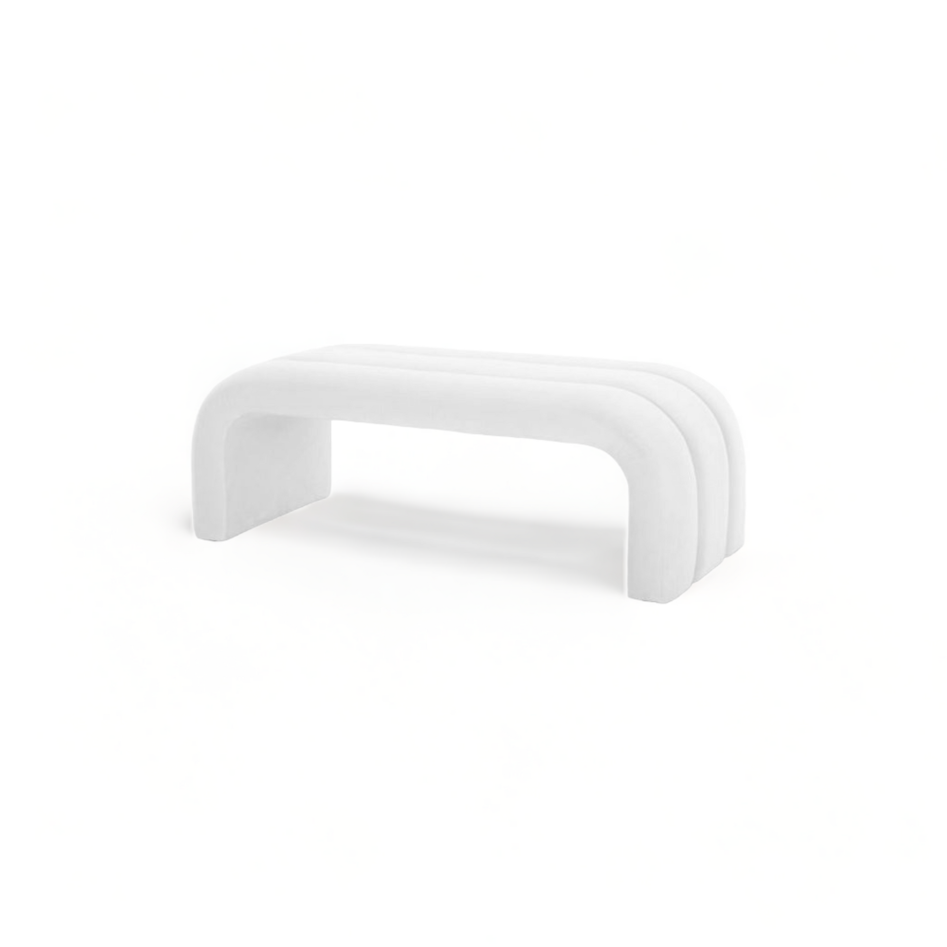 [description] Le banc Art blanc est un banc moderne et tendance qui se distingue par ses courbes et sa fonctionnalité. Entièrement recouvert d'un tissu bouclé blanc texturé, ce banc présente des rainures modernes et un style élégant. Il s'intègre parfaitement dans tout salon contemporain. Placez-le près de votre lit, dans votre salon comme siège d'appoint ou dans votre entrée. Vous l'adorerez.