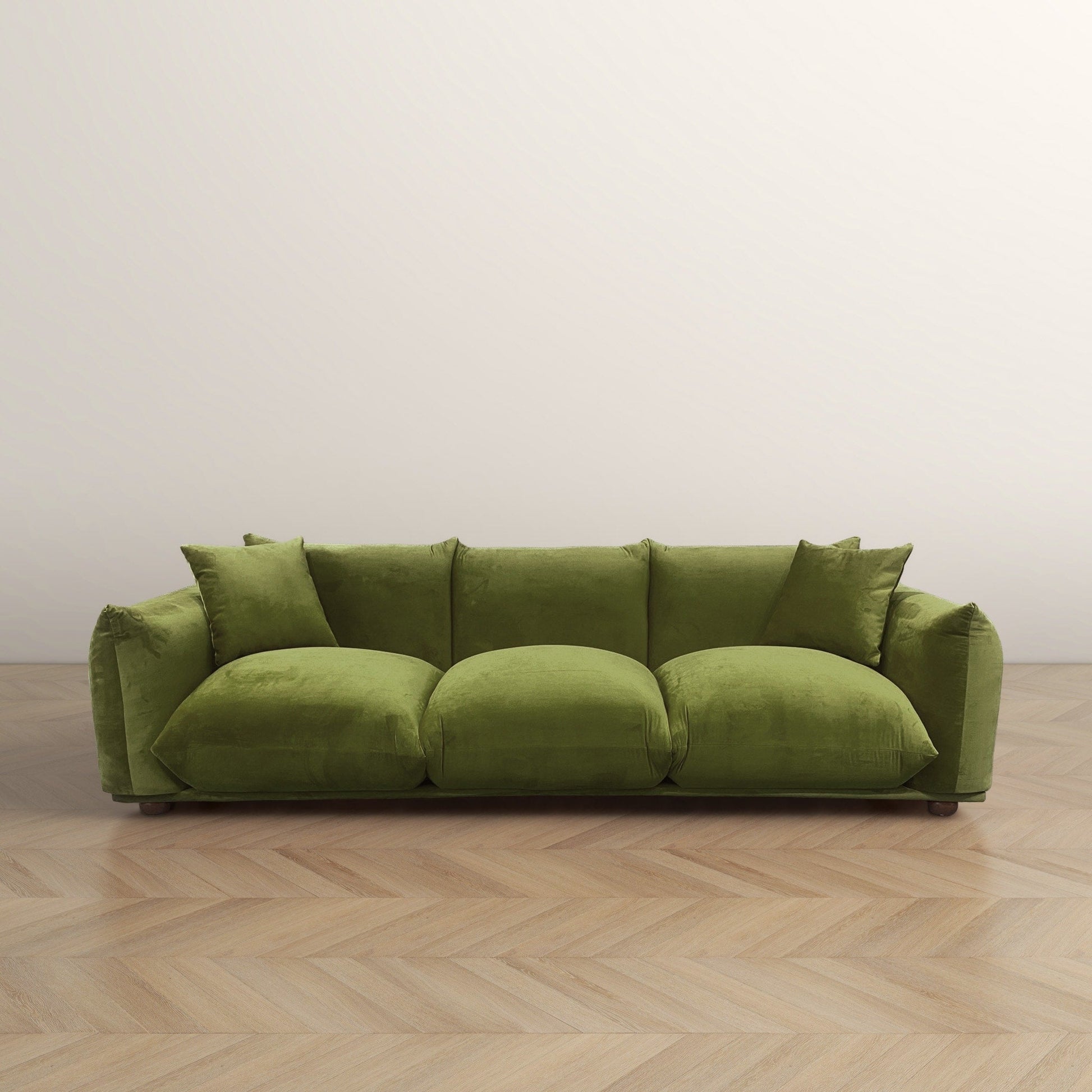 A cloud couch experience meets mid-century modern sophistication! This luxuriously upholstered oversized couch boasts a solid wood frame and legs for lasting durability. This modern masterpiece fits seamlessly into any living space. Sink into its plush cushions and experience the ultimate comfort at an affordable price. Upgrade your lounging game with our comfy cloud sofa - where style, quality, and coziness converge!