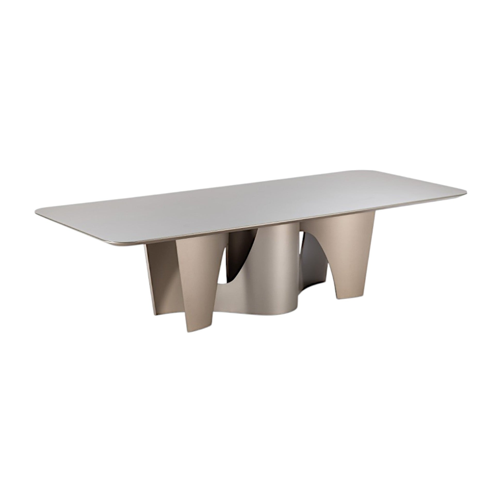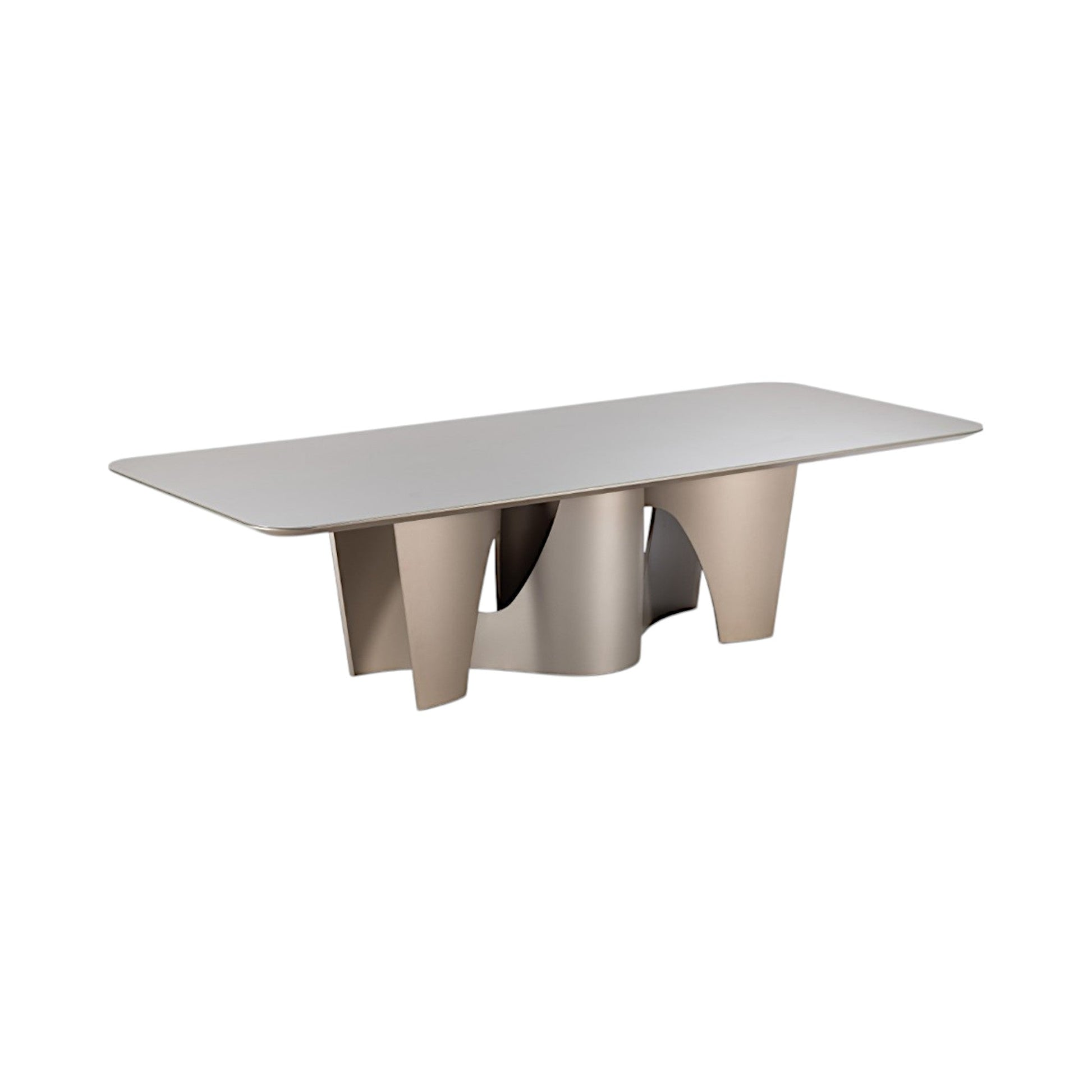 moderne et luxueux conception sophistiquée forme rectangulaire et base incurvée laque métallique mate plateau en verre coloré |