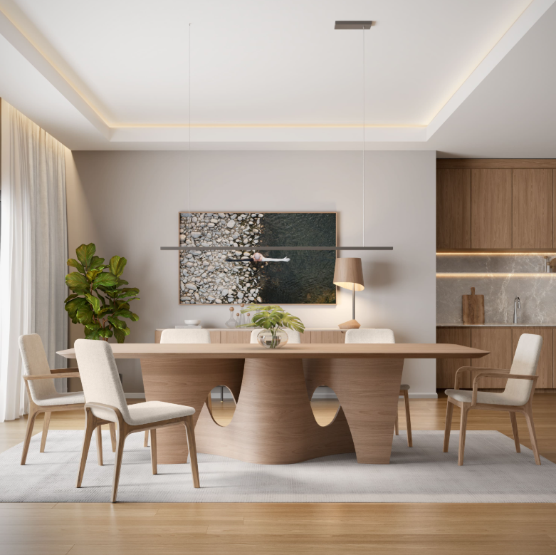 [description] La table à manger Aurora est le meuble le plus attrayant pour les amateurs d'art. Elle allie les lignes rectangulaires douces et épurées de son plateau au charme de son piétement sculptural en bois courbé. Véritable objet de conversation, elle est aussi fonctionnelle qu'élégante. L'association de cette table à manger et de chaises rembourrées confèrera à votre salle à manger une touche de luxe et de sophistication qui créera un espace contemporain unique.