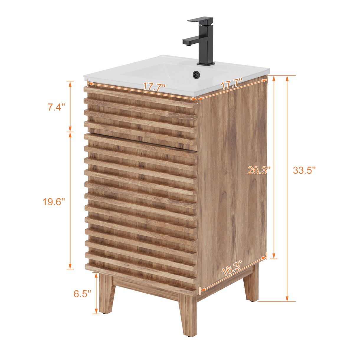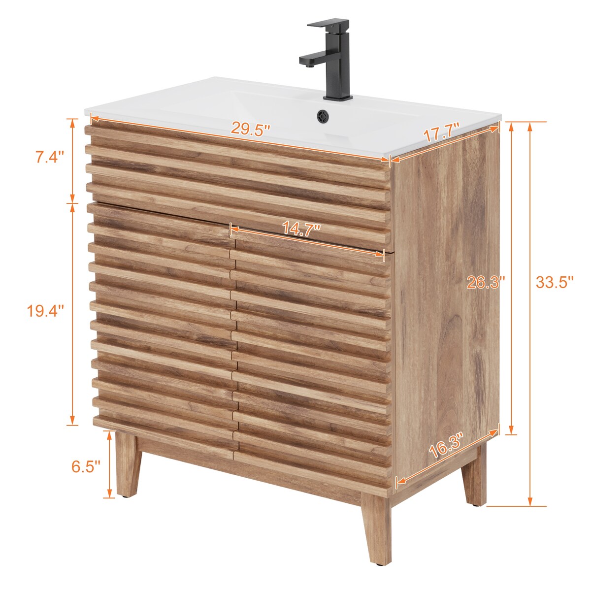 This Mid-Century Bathroom Vanity with drop in ceramic sink top with faucet drain set features large storage capacity. It is ideal for everyday bathroom tasks like brushing teeth and washing hands. And you don't need to purchase extra parts with this set. Safety and Health is the first standard we are following. Eco-friendly MDF with water proof craft to resist the threat of moisture. Integrate basin with overflow come with luxury design will surely brighten your bathroom and add value to your property. Each color vanity can perfect fits all decoration of bathroom. We hope you will smile while using this high standard vanity cabinet. Please note, needing to install and that's easily if you following the installation instruction.