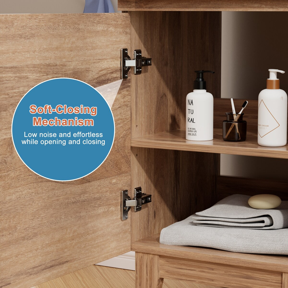 - 【Ample Storage Space】You will be amazed by the powerful storage space of this cabinet. Designed with no tiers, you can store large items without hassle. Drawers will store different items to help you find within seconds. Whatever you want, it can do! Most importantly, your bathroom is really clean and tidy.