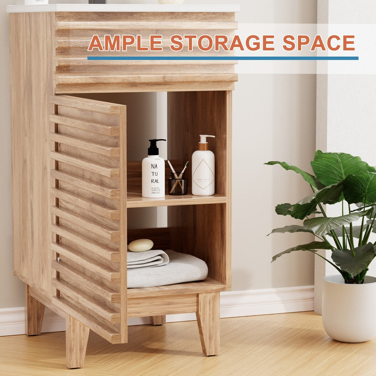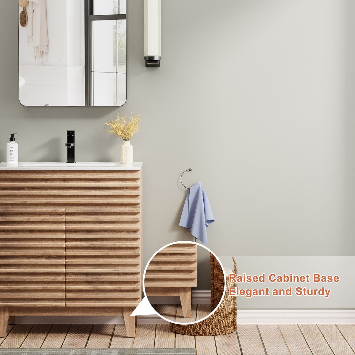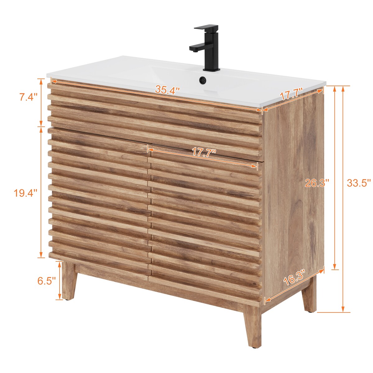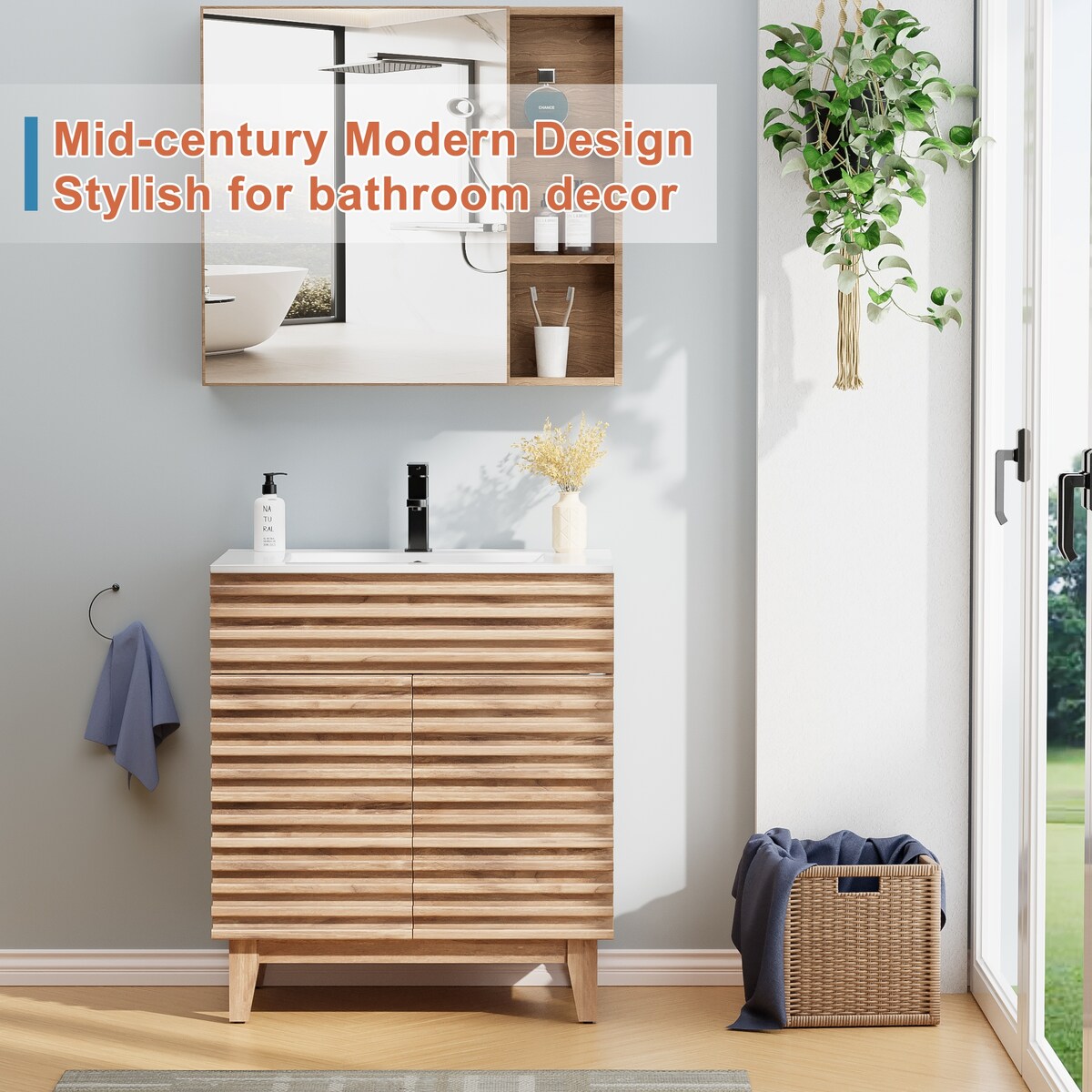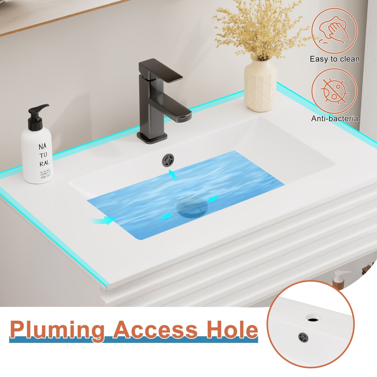 - 【Mid-Century Style】Combining handles and decorative wood stripes, the mid-century modern style floating vanity can well match your bathroom or powder room. Clean lines, Easy life.