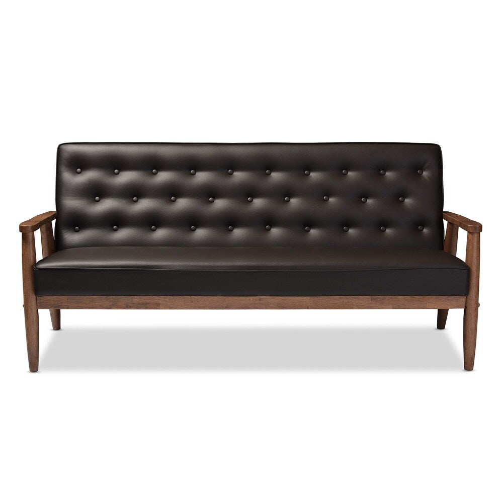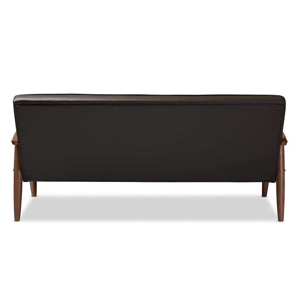 Baxton Studio Sorrento Mid-century Retro Modern Brown Faux Leather Upholstered Wooden 3-seater Sofa