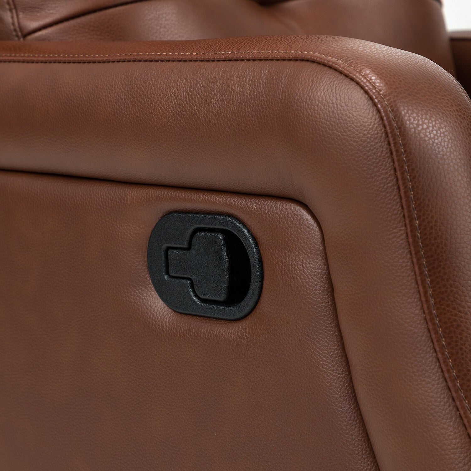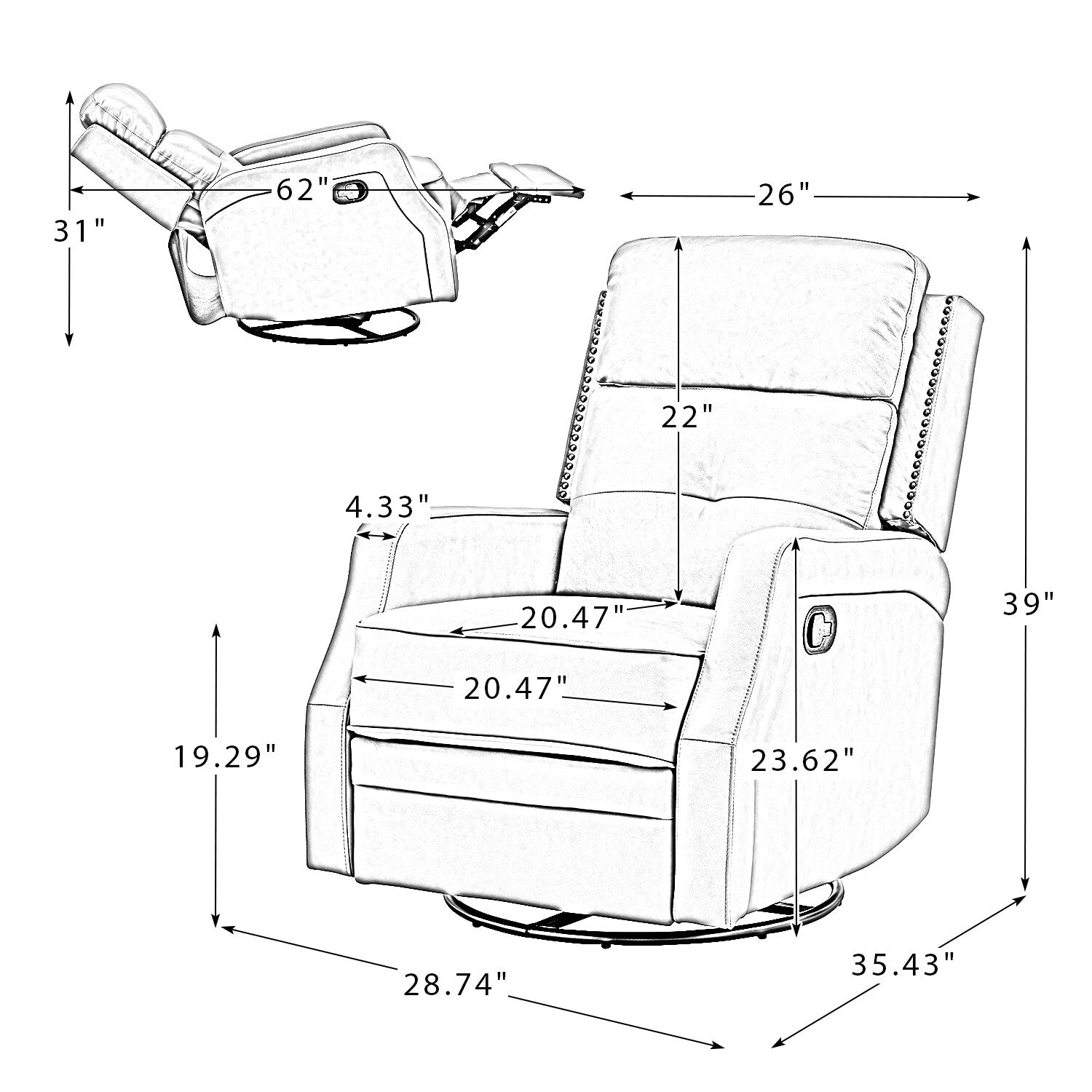 Whether you need it to complete the look of your living room or to accent the master suite, this swivel recliner set is the perfect spot to relax. This recliner set has two cushioned pads on the back of the chair that will support your lower back well. The foam-padded cushions exude ease and comfort when standing upright and reclining, and the built-in S-springs provide excellent support. It is wrapped in skin-friendly leather, and the metal base with swivel function adds more fun to the seat. This recliner set is the best choice for relaxing and enjoying your leisure time.