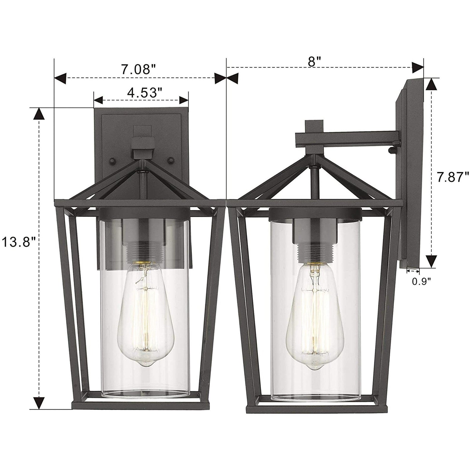 Black Metal/ Glass Outdoor Sconce Lantern Light Set of 2