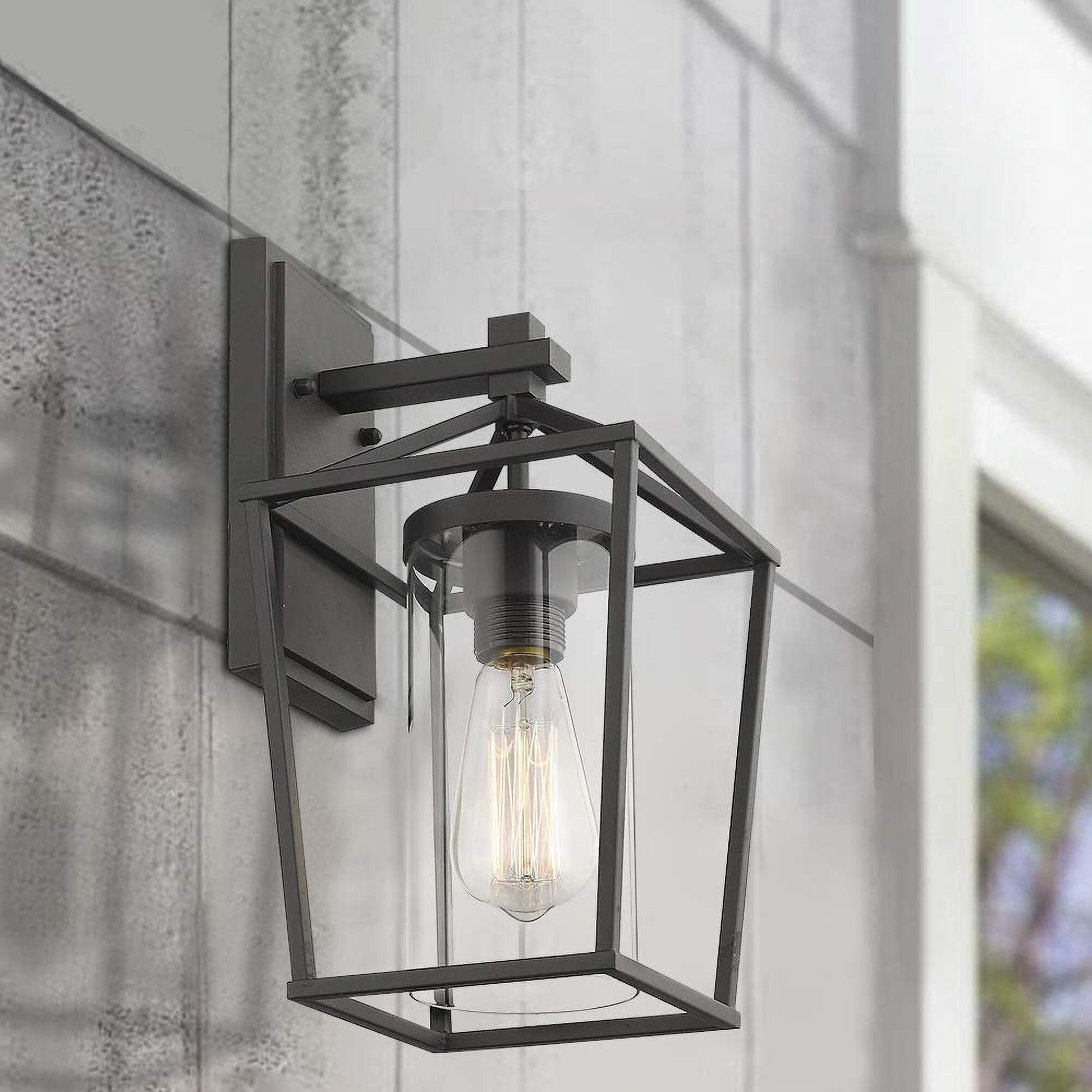 Illuminate your outdoor space with these stylish and modern JAZAVA Black Metal/Glass Outdoor Sconce Lantern Lights. Made with a sanded black metal frame and perfectly shaped clear seeded glass inserts, these weather-resistant lights are suitable for wet locations, making them perfect for brightening up your porch, patio, balcony, front door, entryway, or corridor. The open bottom design allows for easy bulb replacement, and installation is made simple with all mounting hardware included. Please note that bulbs are not included. Choose from two sizes to fit your space.