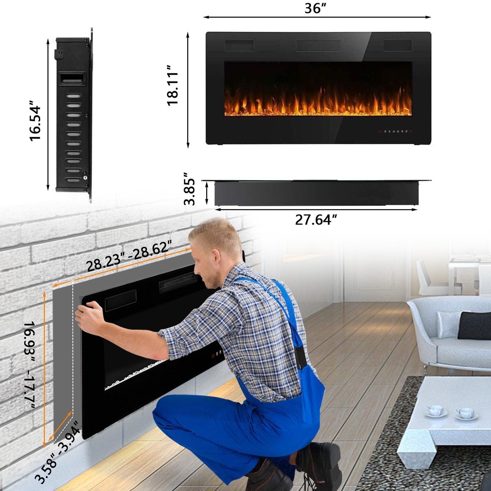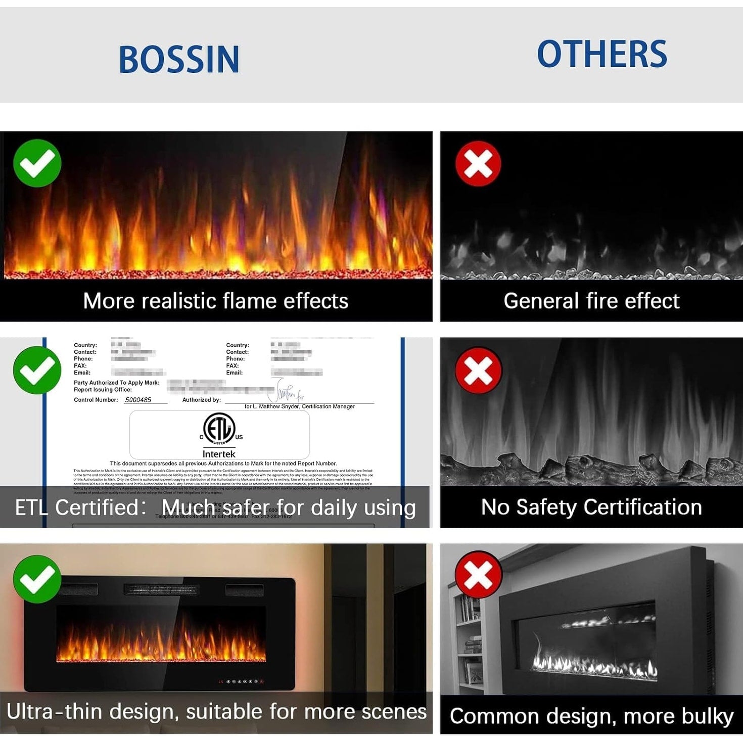 Bossin 30 to 72 inch Electric Fireplace Ultra-Thin and Silence Linear Recessed Wall Mounted Fireplace with Remote Control