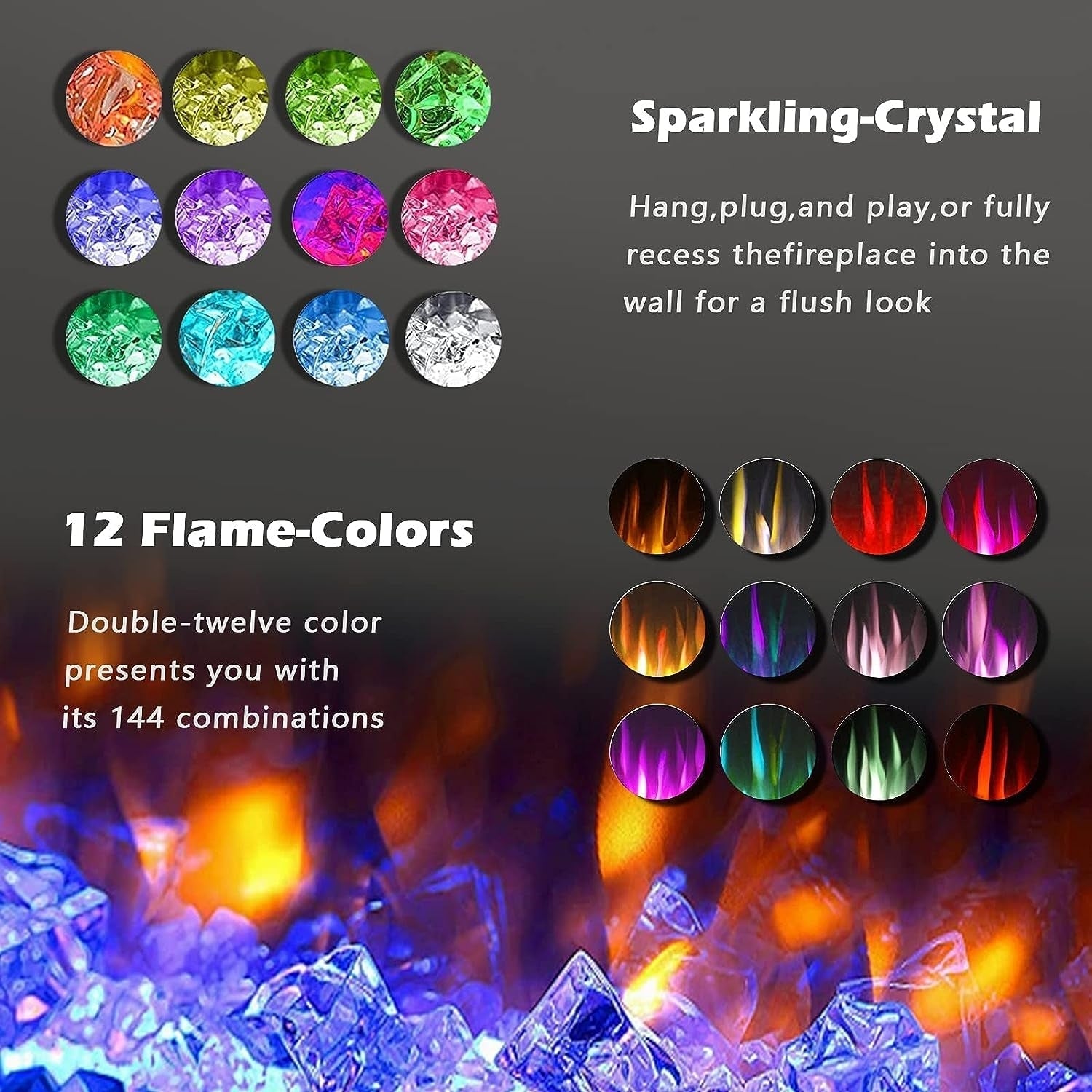 - Full-spectrum LED colors for unique ember bed display with 12 flame colors, 5 flame speeds, and 12 ember bed color lighting options
