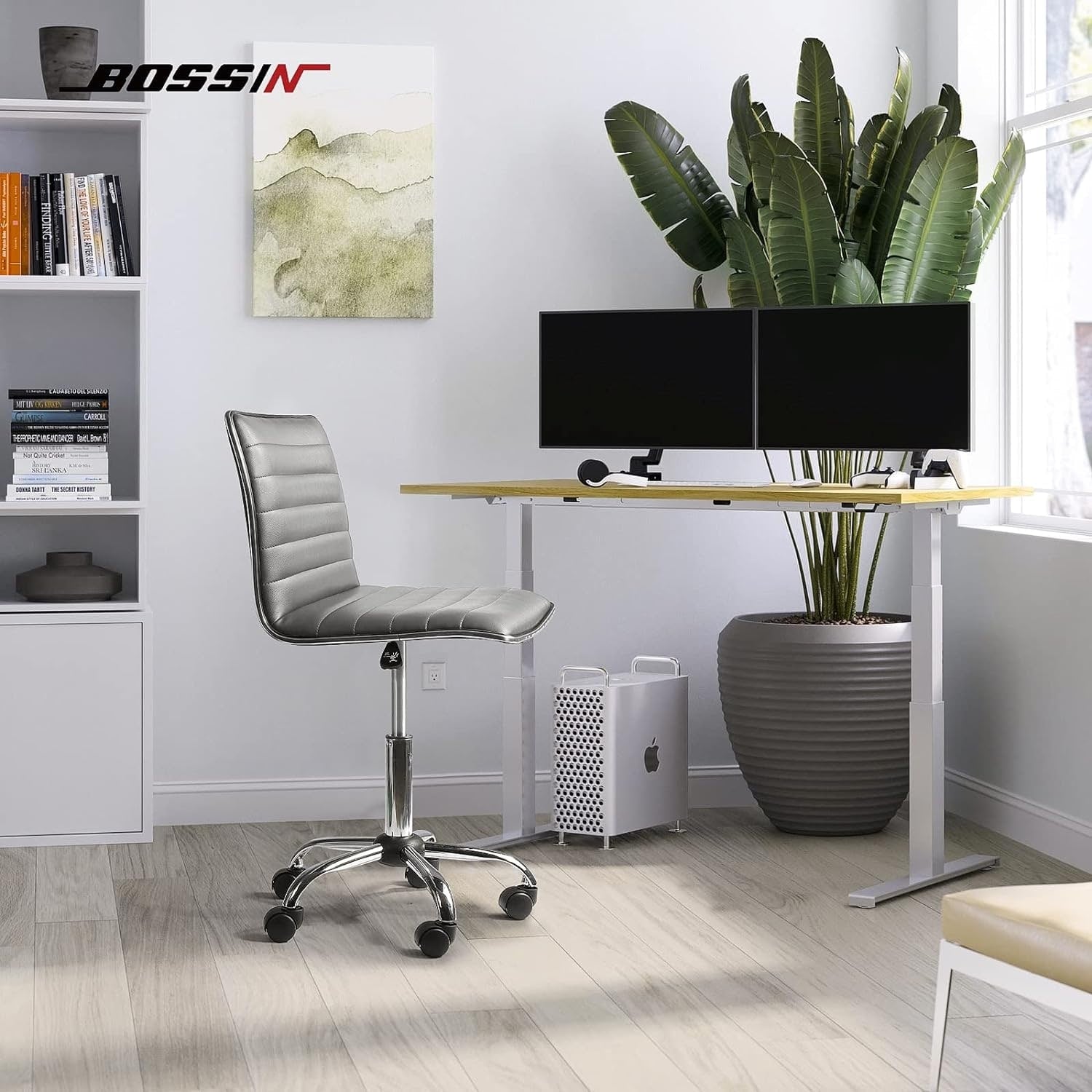 BOSSIN Adjustable Home Office Chair, Mid-Back Armless Ribbed Swivel Task Chair,Vanity Chair for Small Space, Livingroom Make-up