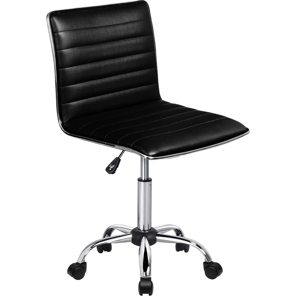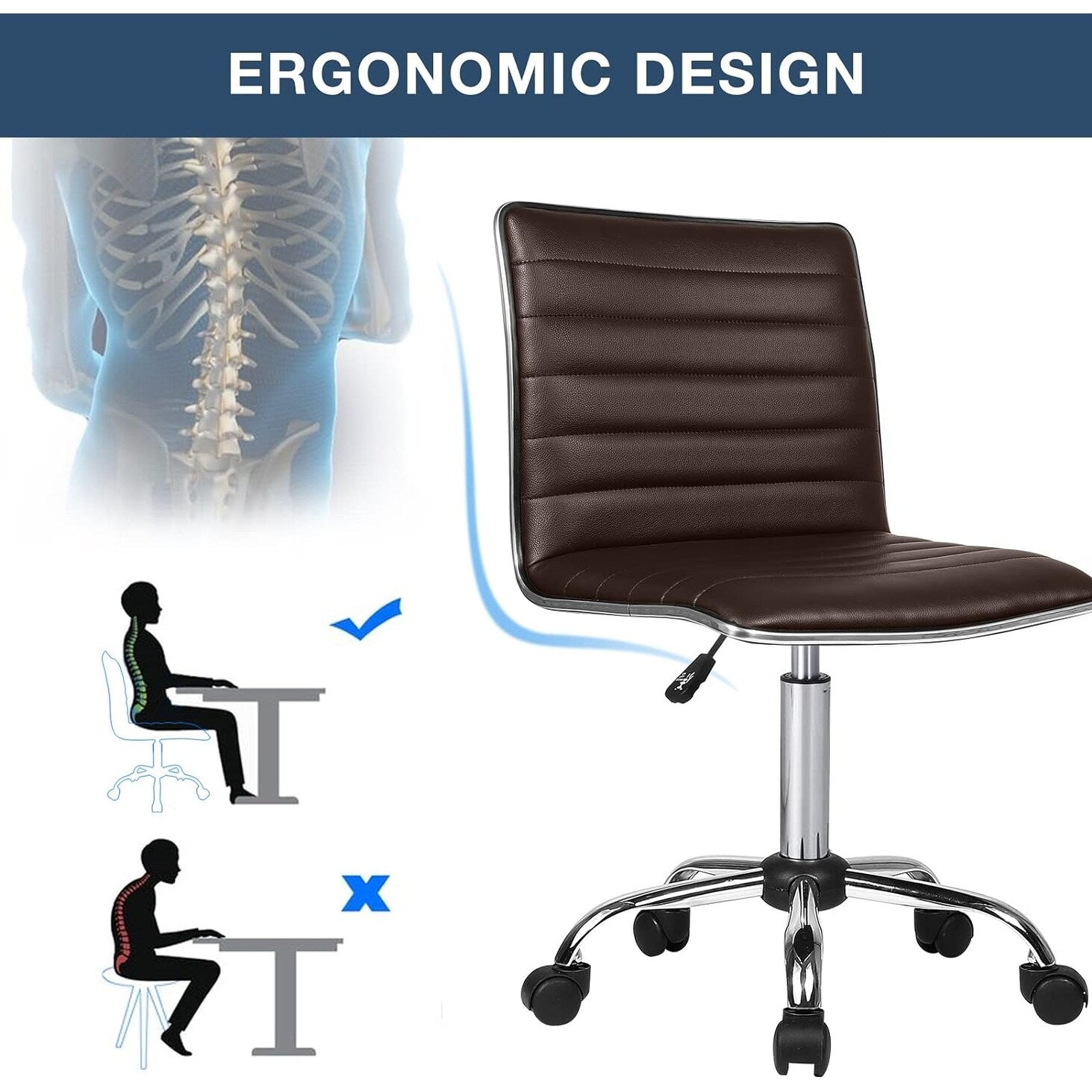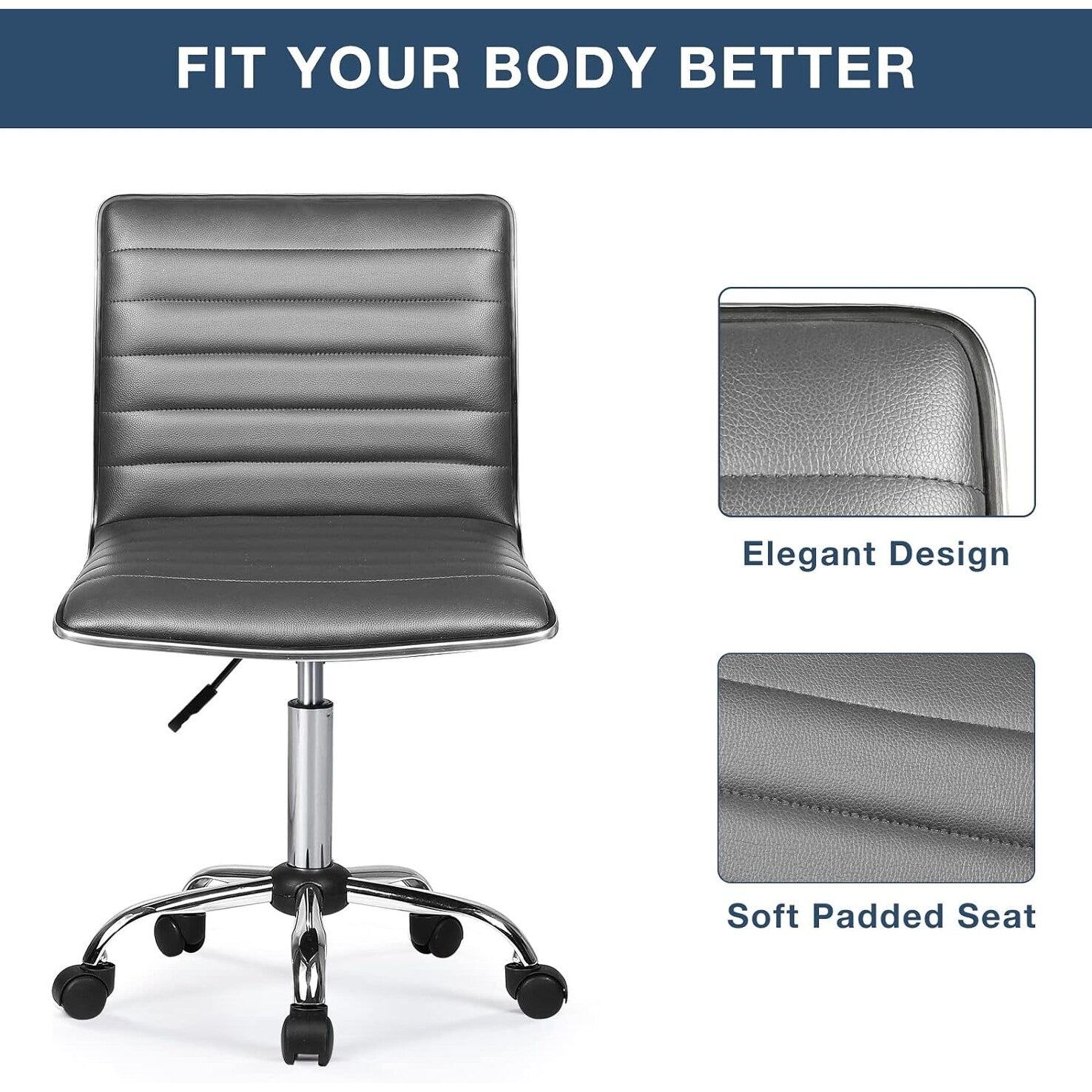 PU Leather Low Back Armless Desk Chair Ribbed Armless Swivel Task Chair Office Chair.