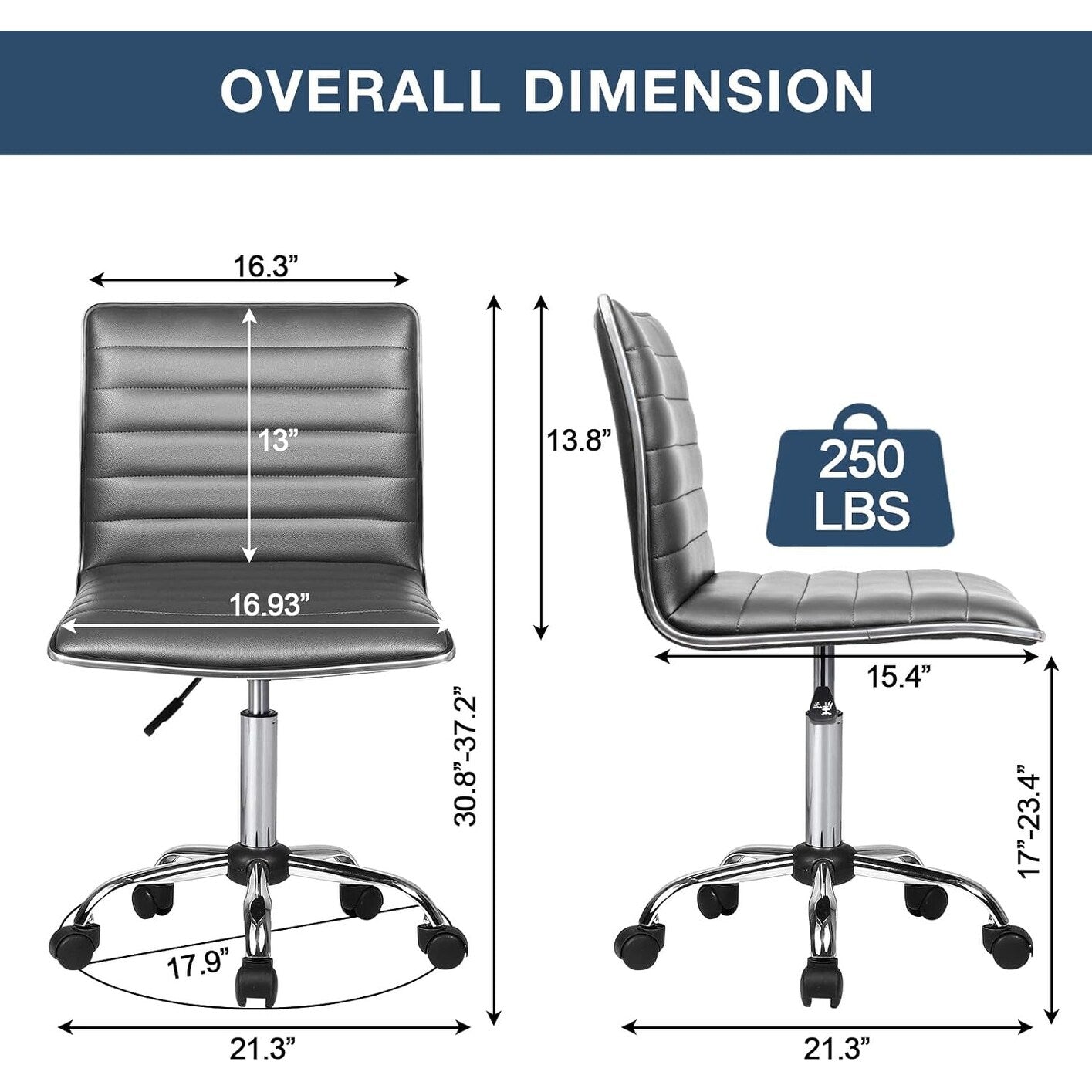 - ✅【Perfect Size and Looks Stylish】Our leather office chair add to the extra modern style. The armless design allows this chair to slide without difficulty under your vanity table, computer desk, writing desk, easy to push under the office desk for better space-saving.