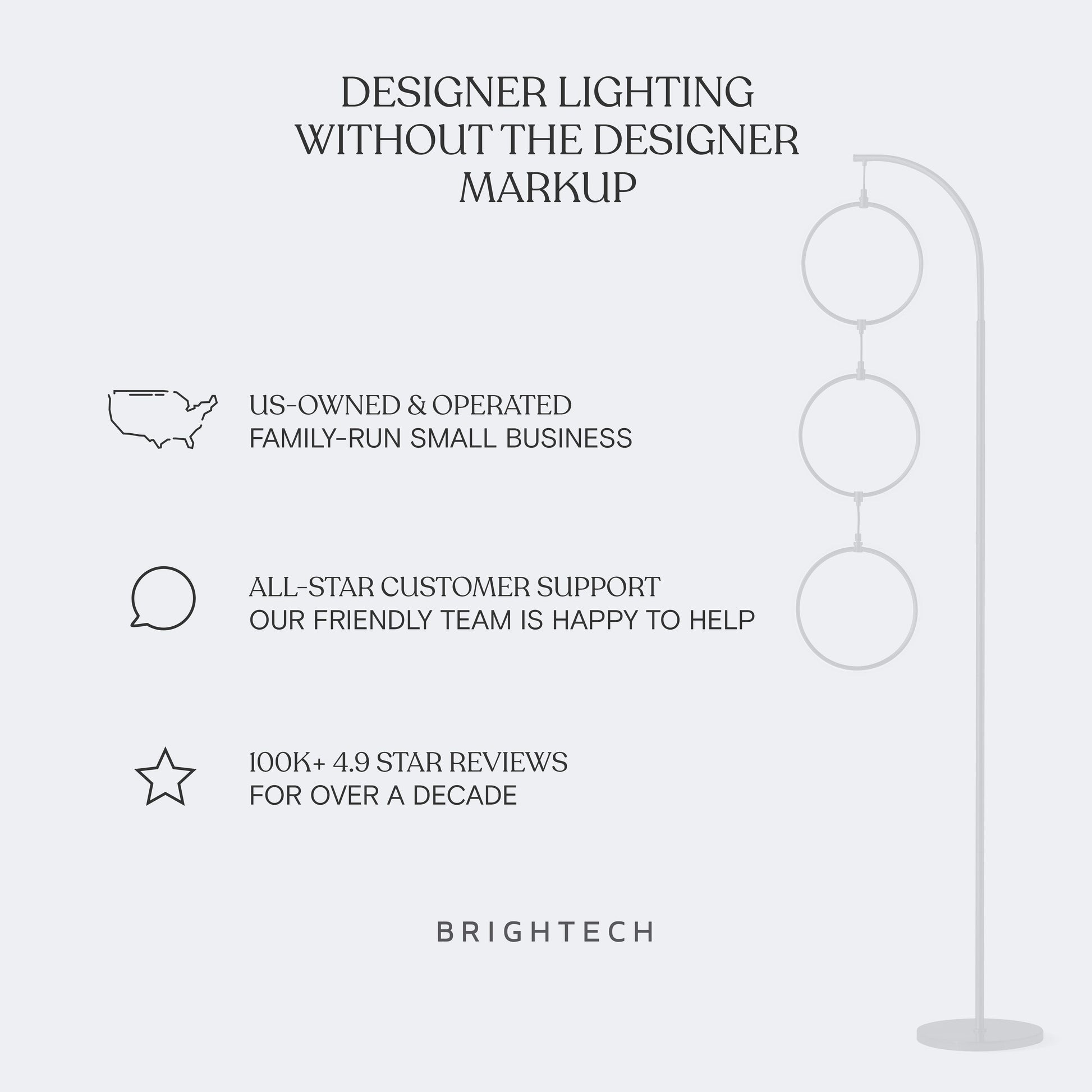 Brighten and style your home with the Brightech Nova Modern Floor Lamp, the ultimate contemporary arc lamp ideal for those searching for an elegant lighting solution. This decorative lamp features a unique three-circle ring-style pendant and a luxurious metallic finish (available in both Antique Brass and Classic Black), making it a perfect fit for industrial, minimalist, or mid-century modern decors. Ideal as a living room lamp, bedroom accent, or nursery lighting, it stands 74 inches tall with a sturdy base for safety and stability. Enjoy versatile lighting with its energy-efficient LED rings and built-in dimmer, offering both ambient and task lighting for up to 20 years. With its sleek design and durable construction, the Nova is not just any floor lamp but a long-lasting, stylish addition to any room, backed by Brightech's 3-year warranty. Whether it's for reading, accenting, or simply illuminating, this lamp is a top pick for those seeking a modern, stylish, and functional floor lamp.