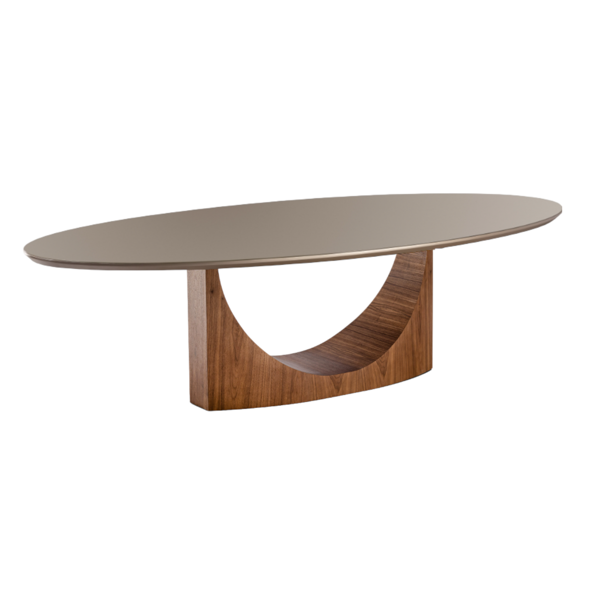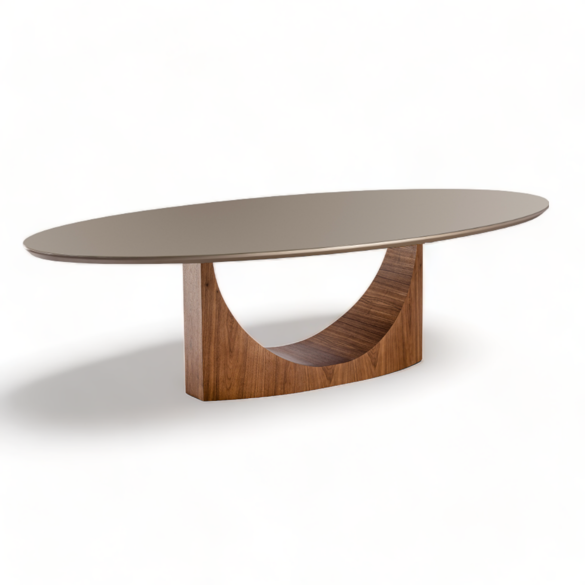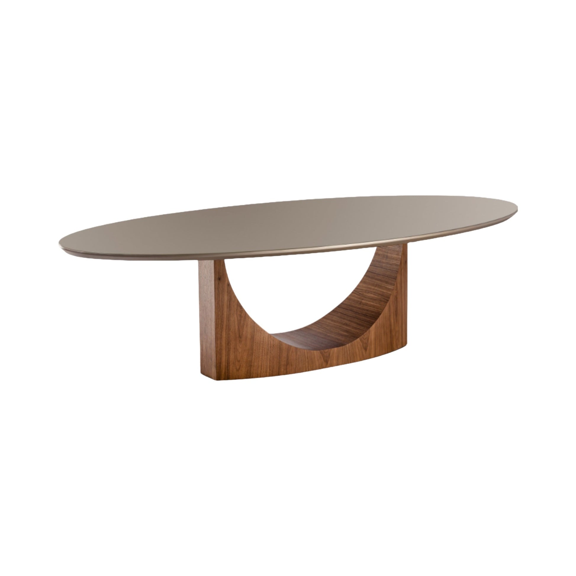 contemporain et sophistiqué fonctionnel pour n'importe quelle pièce forme ovale courbée Plateau en verre trempé couleur Urano Base en bois de noyer idéal pour les salles à manger modernes fabriqué au Brésil |