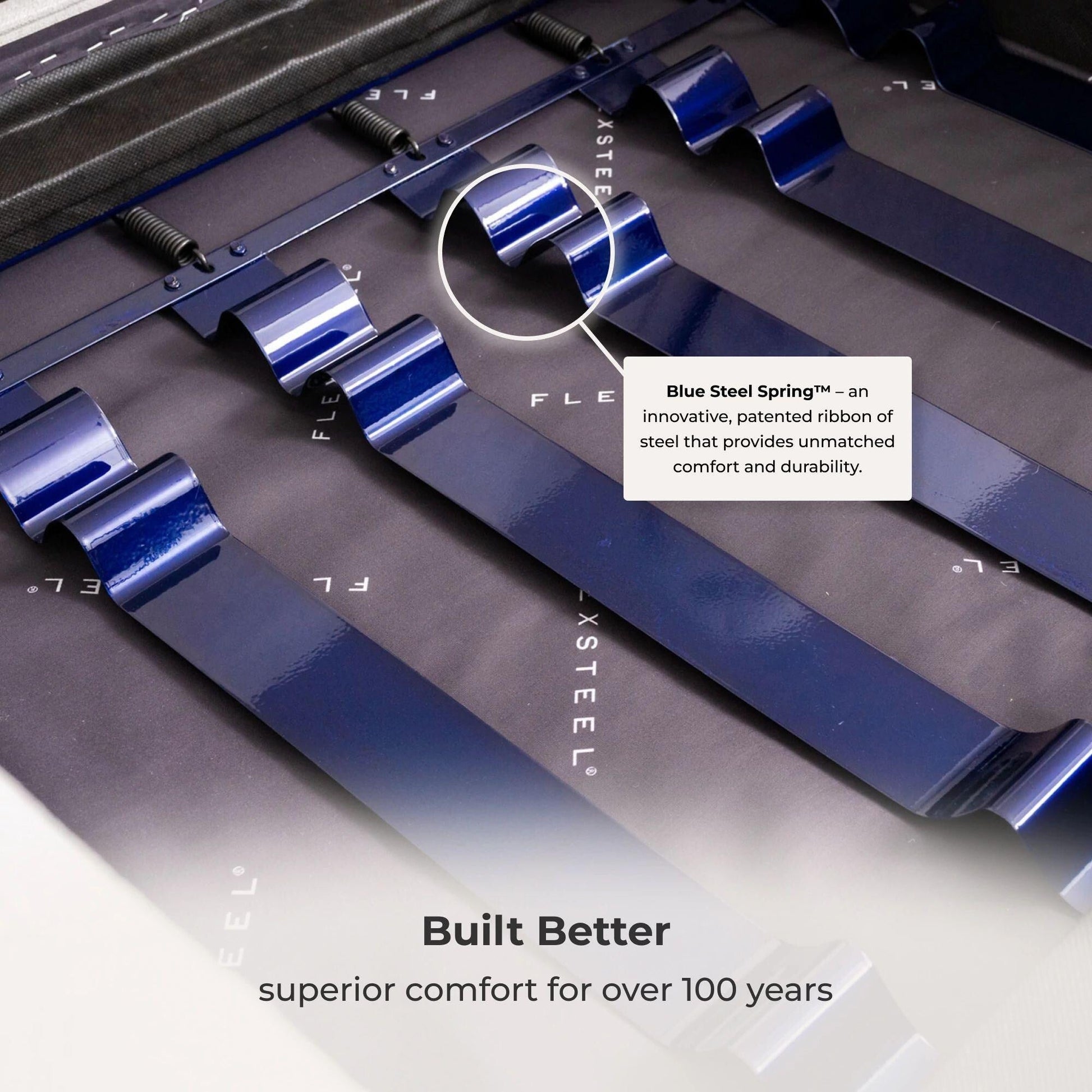 - Built to last with our Dual Flex Spring System—sturdy steel ribbons attached to flexible coils that offer a wide range of motion and durability