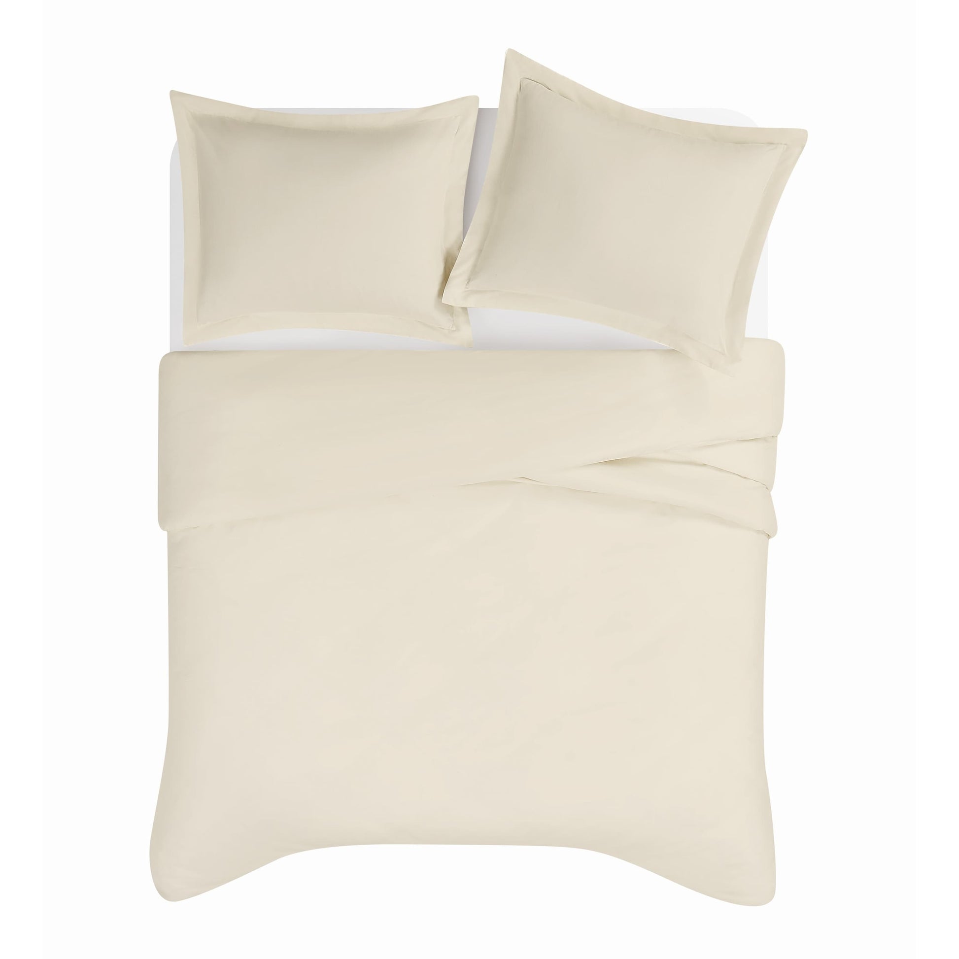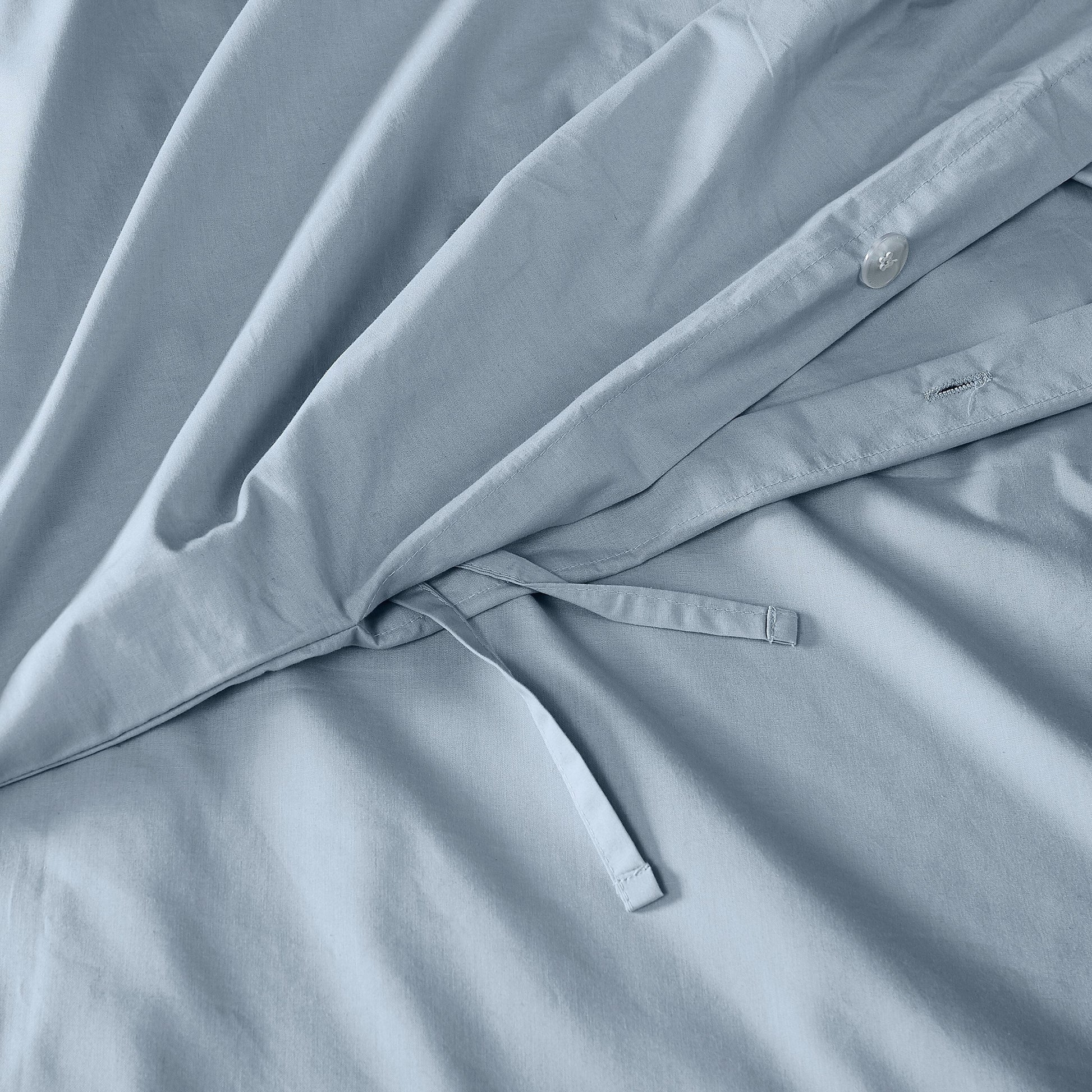 Experience ultimate comfort and sophistication with this Tight-weave Cotton Percale Duvet Set. The ultra-soft and breathable tight-weave cotton fabric is perfect for warm nights, making it an excellent choice for hot sleepers. With a button closure and a variety of solid colors to choose from, this set adds a touch of elegance to any bedroom. Plus, it gets softer with each wash, making it feel even more luxurious over time.