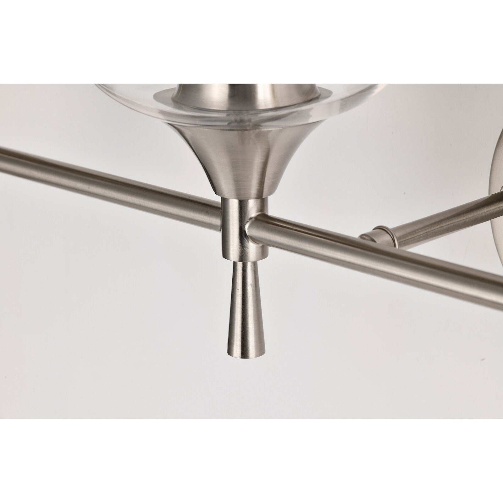 - Brushed nickel finish vanity light with clear glass shades