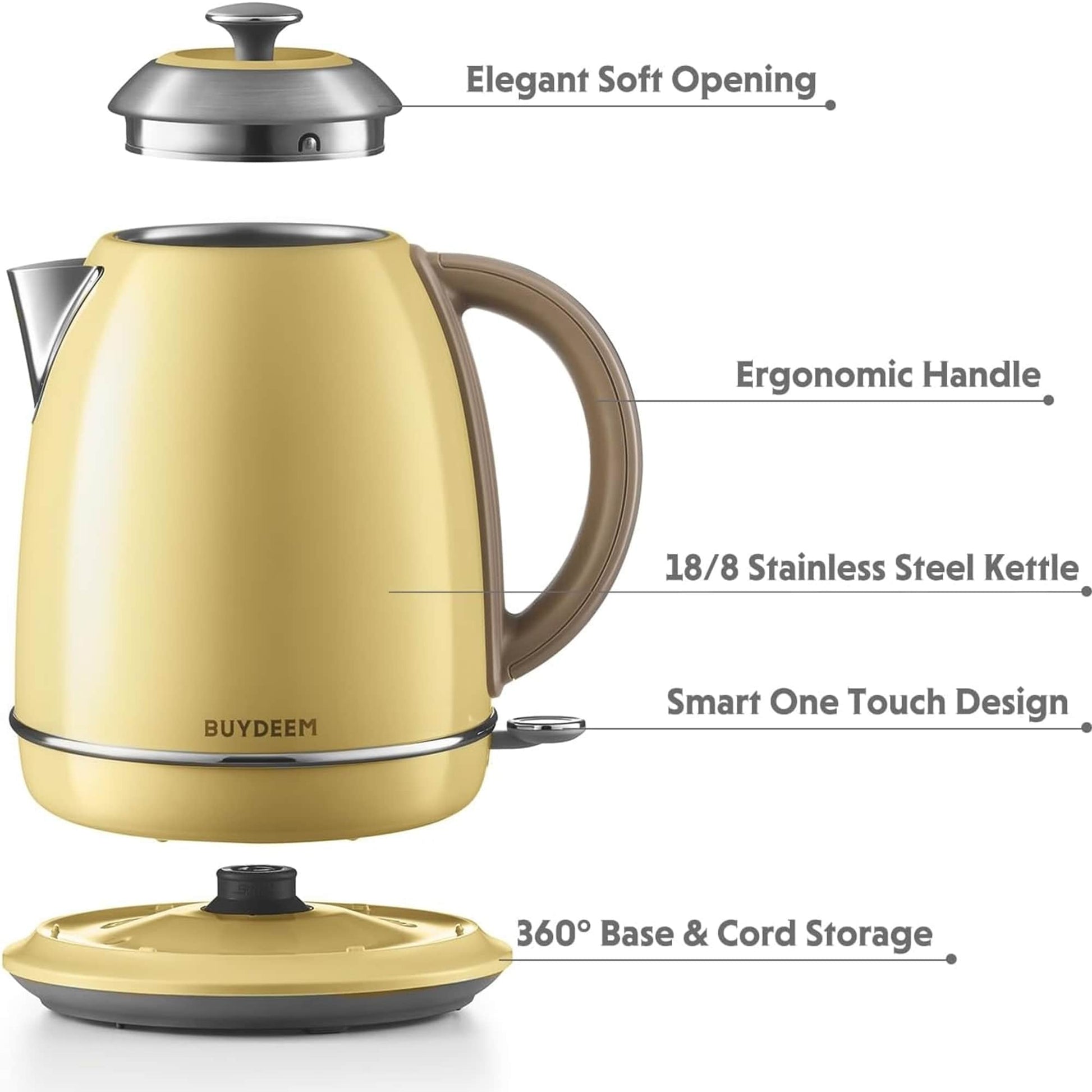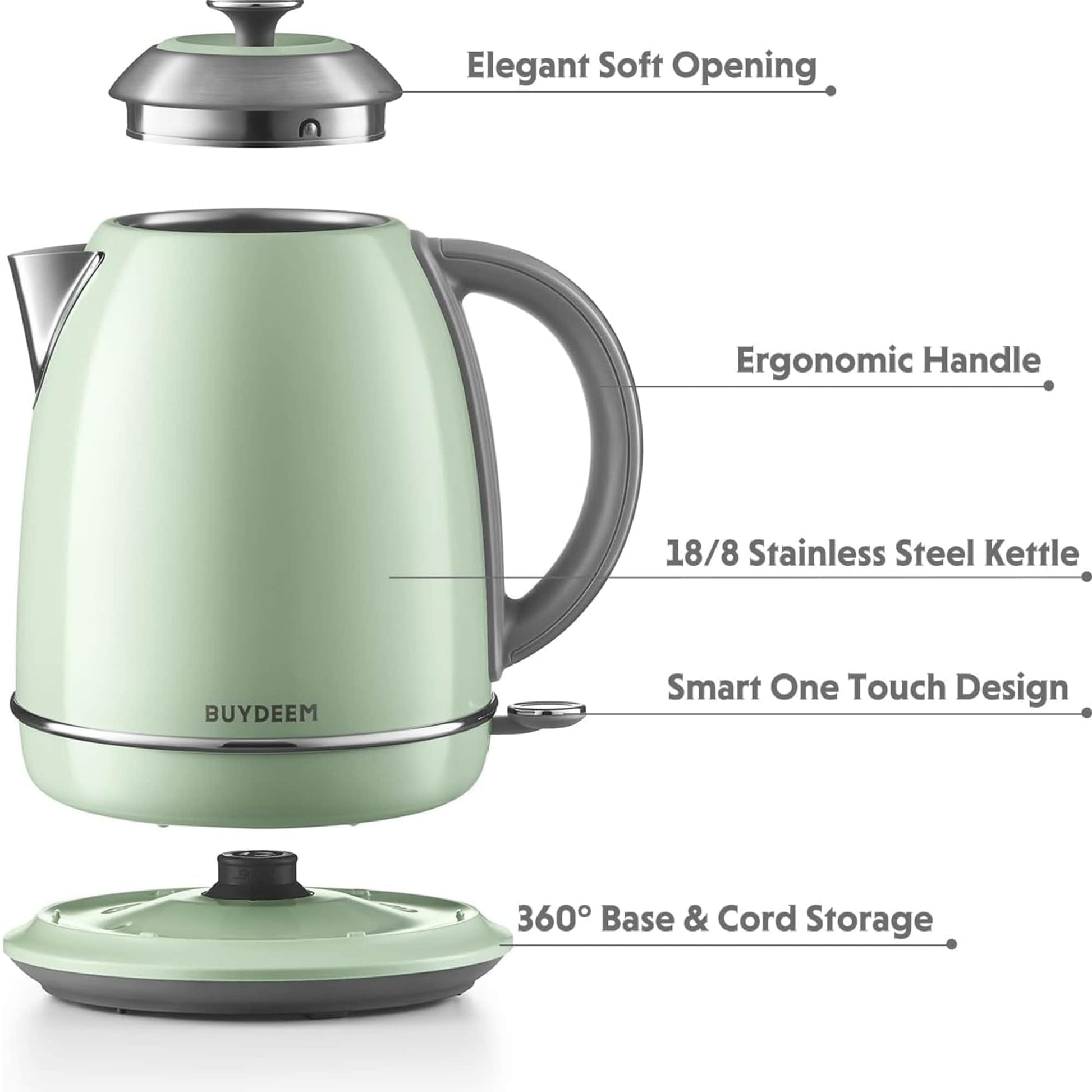 BUYDEEM 1.7L Stainless Steel Electric Tea Kettle with Auto Shut-Off and Boil Dry Protection