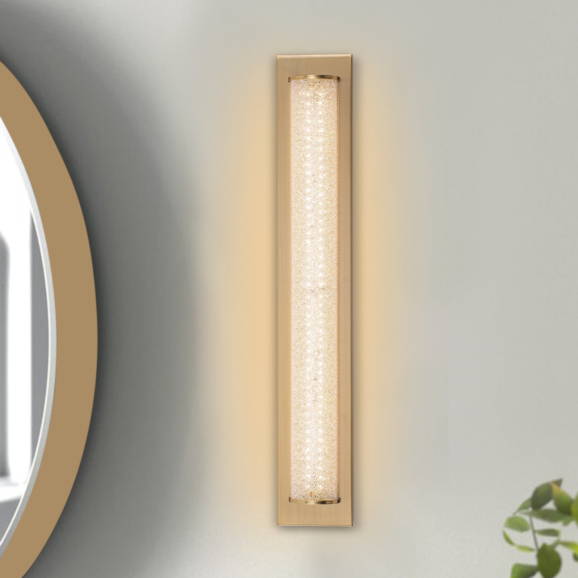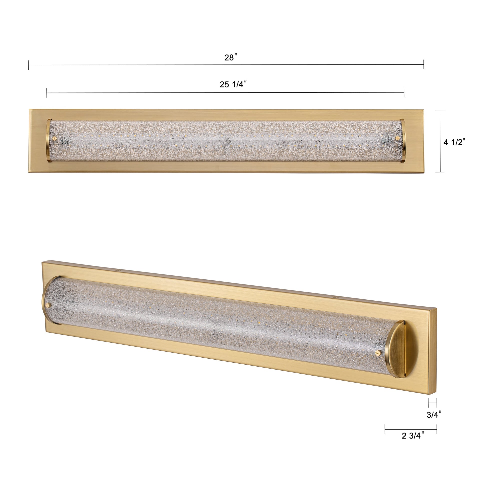 C Cattleya 28 Brushed Gold Integrated LED Bathroom Vanity Light Bar with Clear Sandy Glass