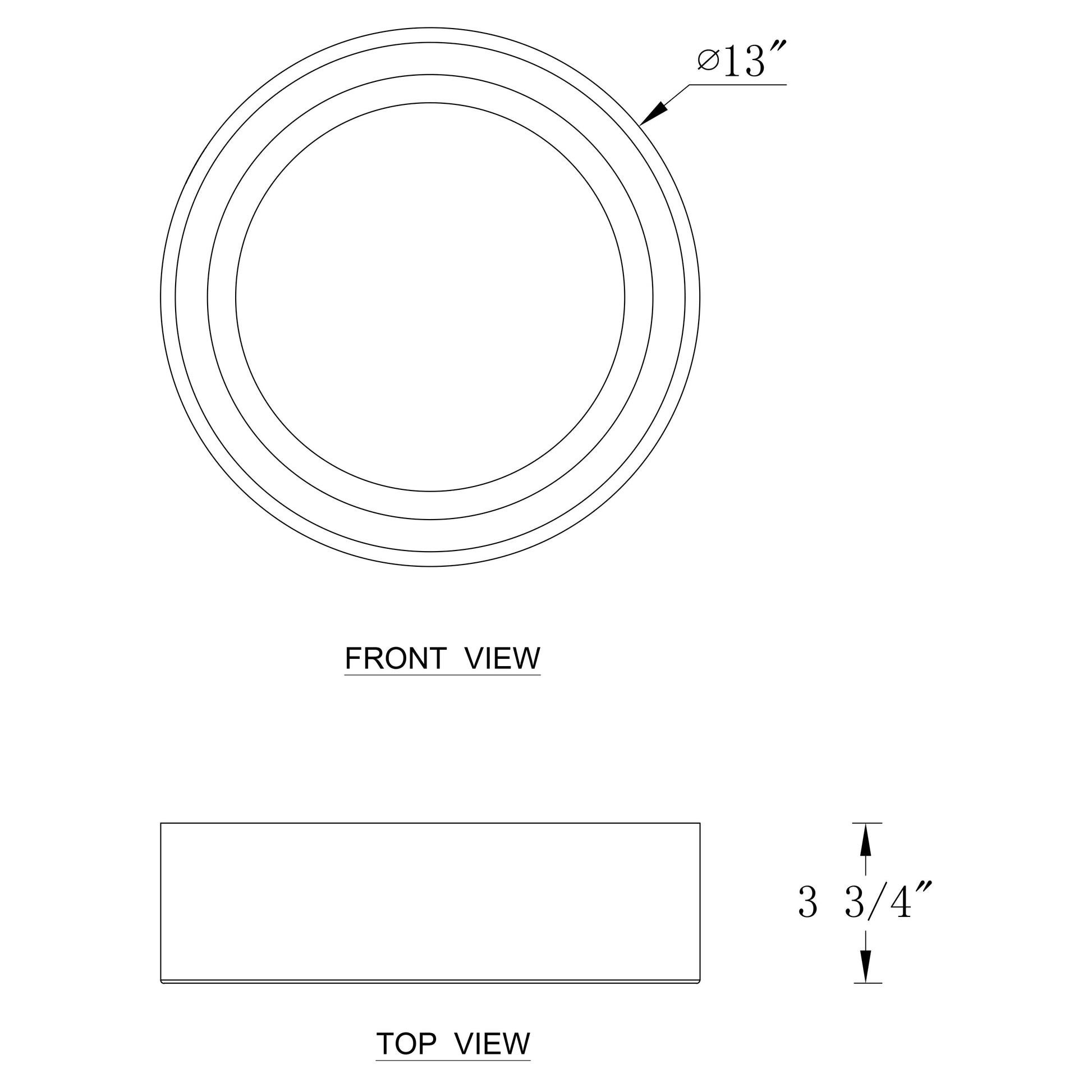 - The 13-inch light fixture is D 13' x H 3.75', and the 16-inch light fixture is D16' x H 3'.