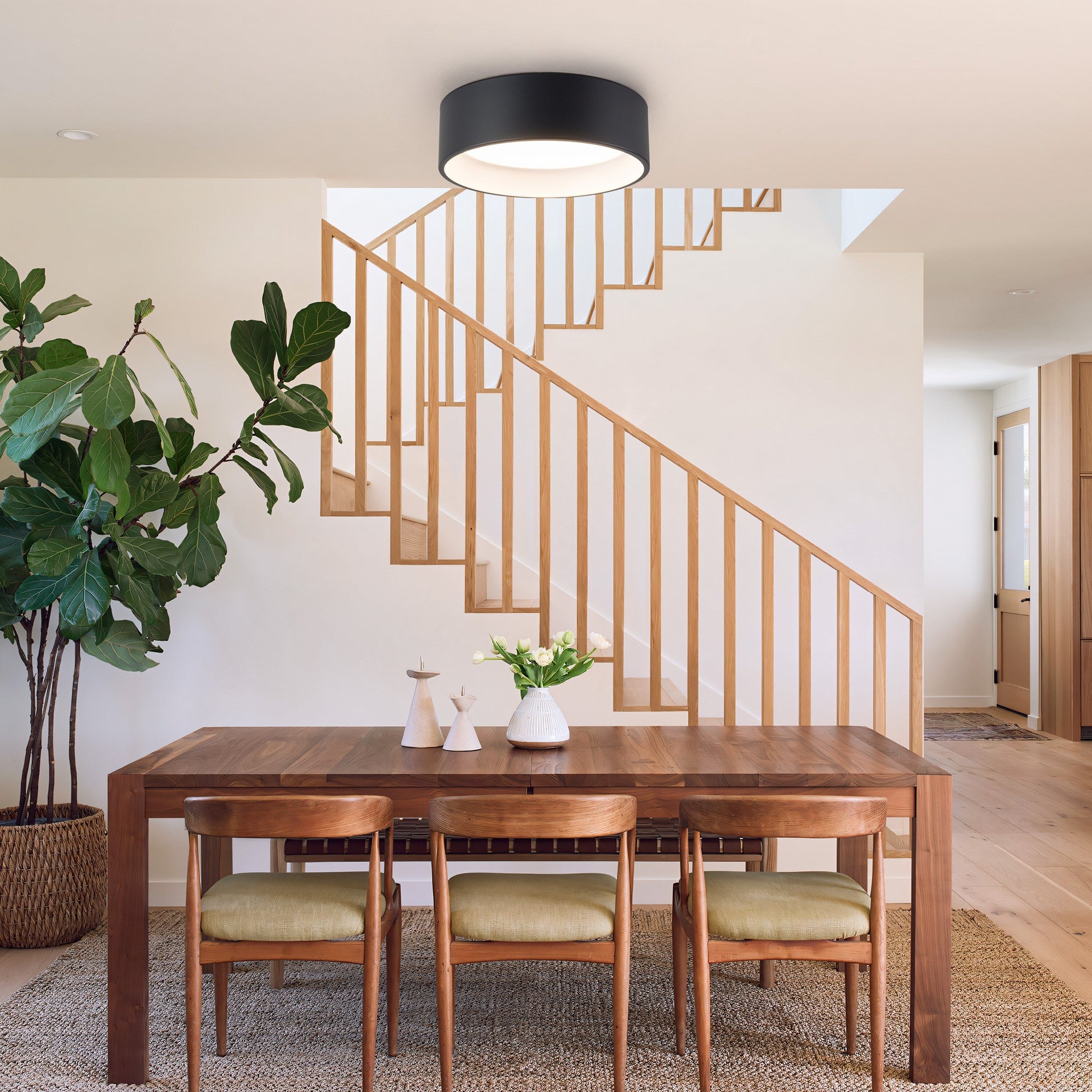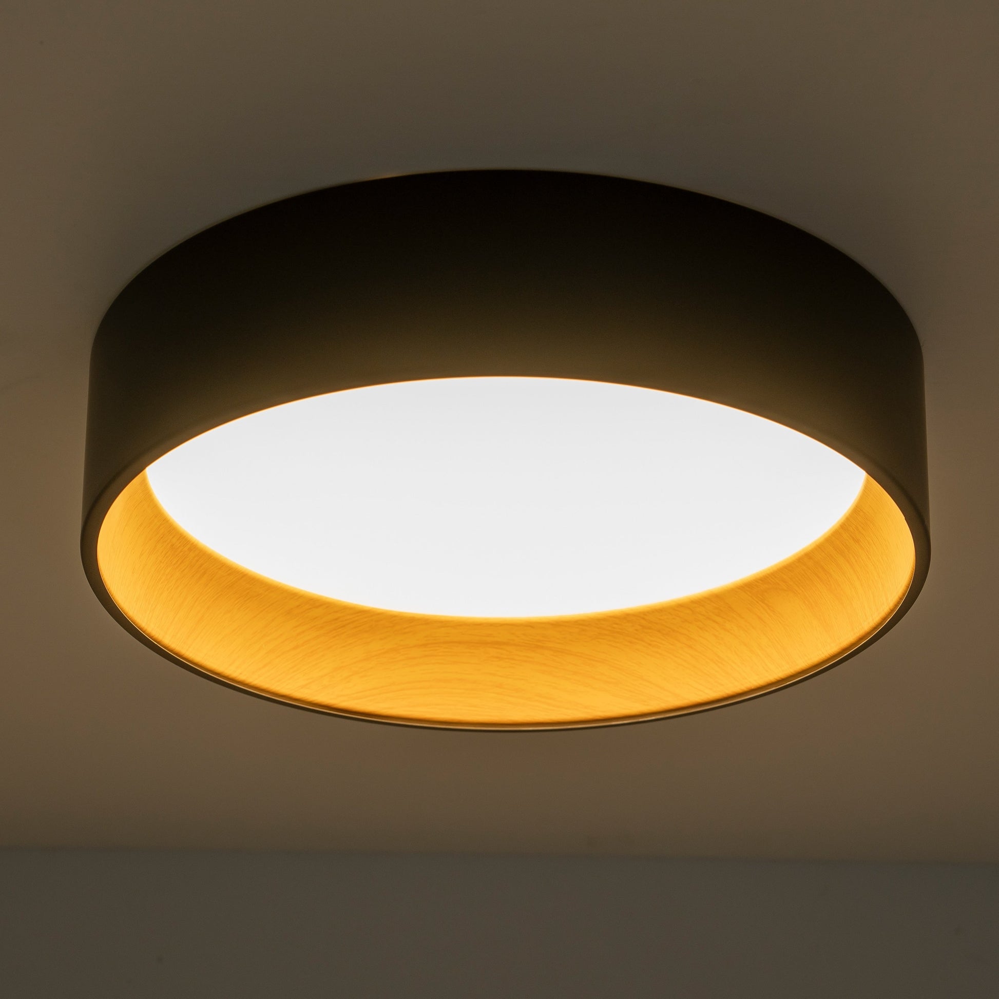 - Elegant two-toned drum LED flush mount ceiling light.