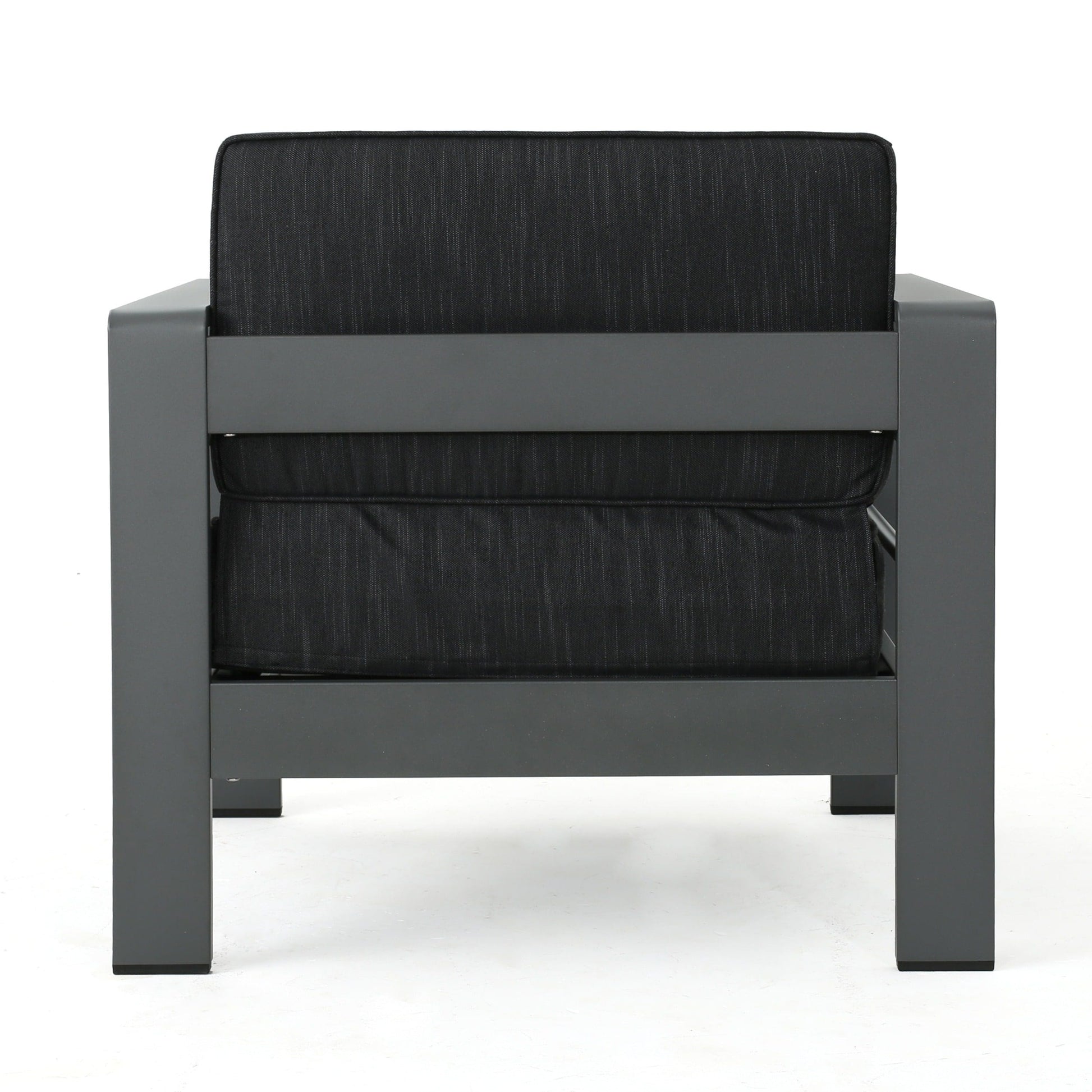 Set up a chic and inviting spot in your backyard for folks to gather with this elegant chat set. The grey fabric and aluminum frames combine to offer an industrial look for a touch of style and longevity. Plush cushions support your guests during visits in the sweet summer air.