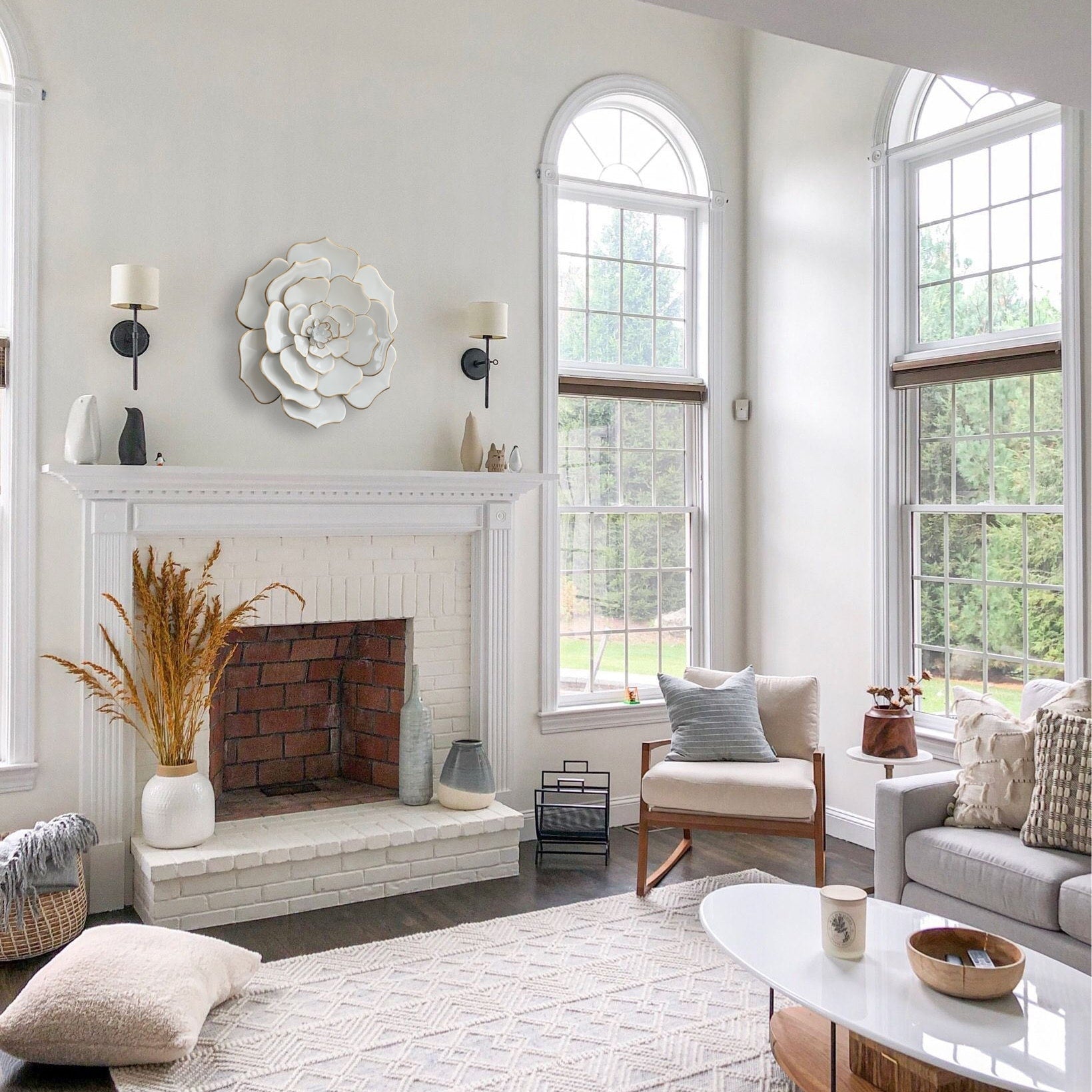 Stage a stunning entryway or living room scene with this white flower metal wall art. Handcrafted and three-dimensional, this wall art has depth and texture, lending an modern art deco motif to your decor. This metal flower wall art allows you to create the desired ambiance for any room in your home. The stunning white flower has petals that are delightfully gold tipped that add to the depth and richness of the decoration. Display in your entryway, bedroom, family room, or office, and make your home a place where flowers are celebrated, even when handcrafted from metal.