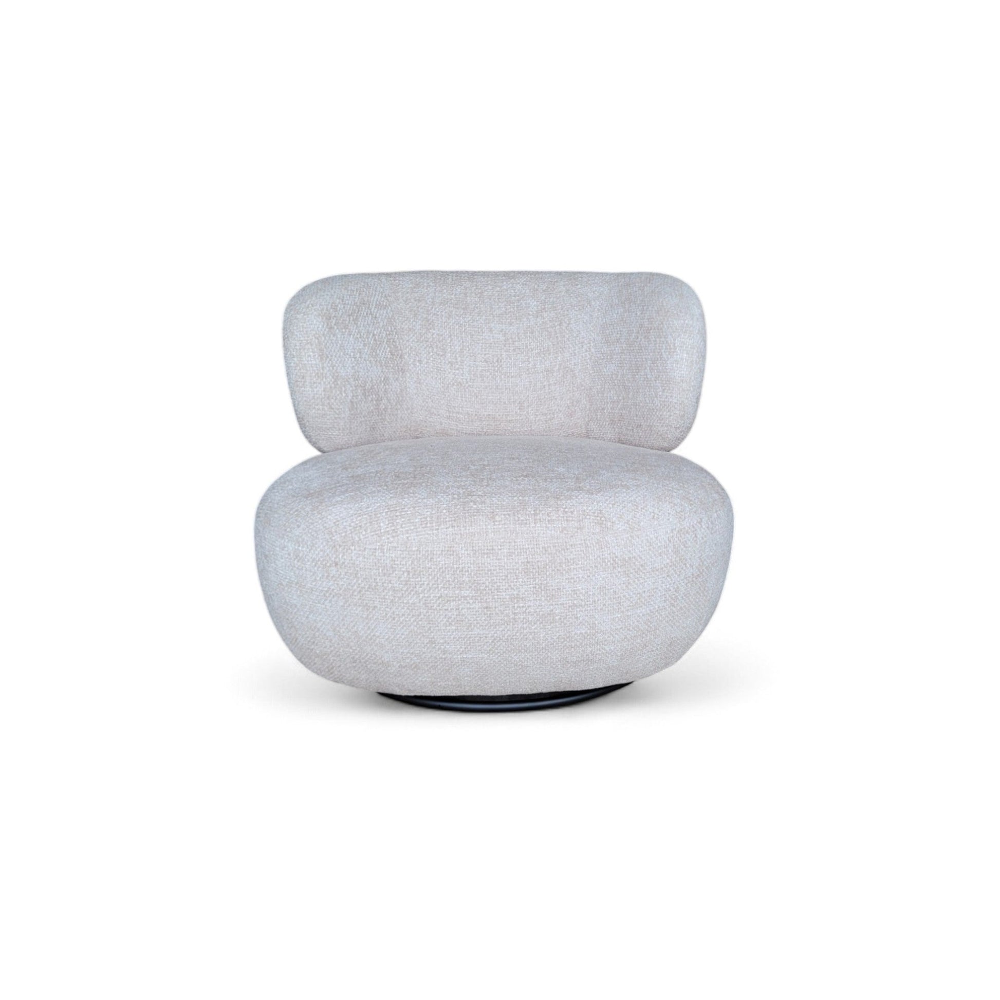 [description] Découvrez l'alliance parfaite du confort moderne et du design organique avec le fauteuil pivotant Cassia . Revêtu d'un doux tissu chenille beige naturel, ce fauteuil sans accoudoirs apporte chaleur, élégance et fonctionnalité à tout espace. Doté d'un dossier et d'une assise sculpturaux et incurvés, le fauteuil Cassia épouse délicatement la silhouette, offrant un confort et un attrait visuel exceptionnels. Son piètement pivotant lisse lui confère une grande polyvalence, le rendant idéal pour les salons, les coins lecture ou les chambres modernes.