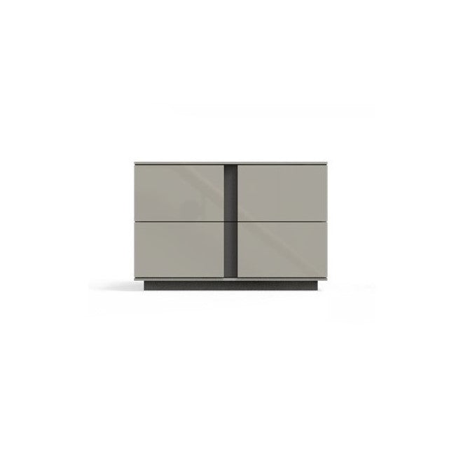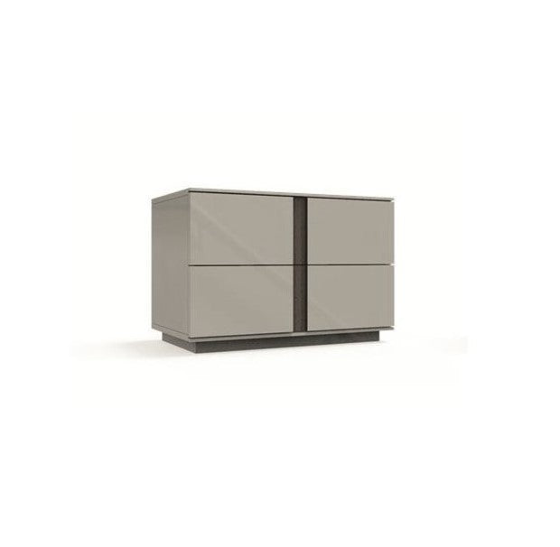 [description] Insufflez une touche de design contemporain à votre chambre avec la table de chevet Cassini. Cette table de chevet spacieuse est dotée de deux tiroirs de rangement. Idéale pour les chambres modernes, elle est laquée gris clair mat avec une touche de finition gris graphite foncé.