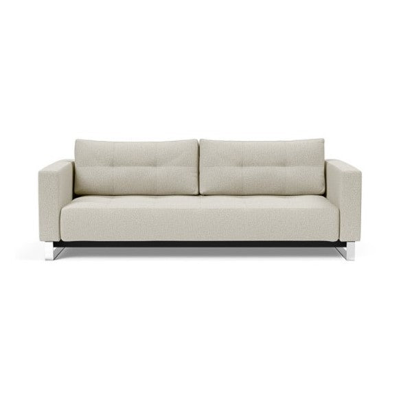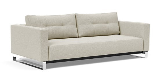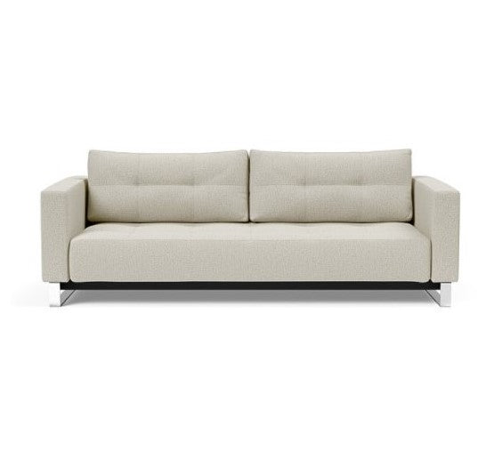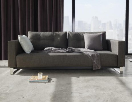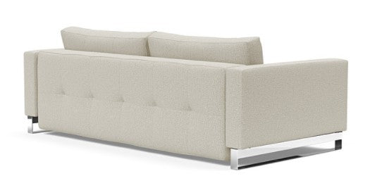 [description] Le canapé-lit Cassius Deluxe Excess se distingue par son design moderne et sa fonctionnalité. Il est doté d'une assise épaisse et confortable avec ressorts ensachés, de coussins de dossier et d'une assise spacieuse. Il est revêtu de différents tissus associés à un piètement chromé. Et cerise sur le gâteau, il se transforme en lit queen-size. [/description]