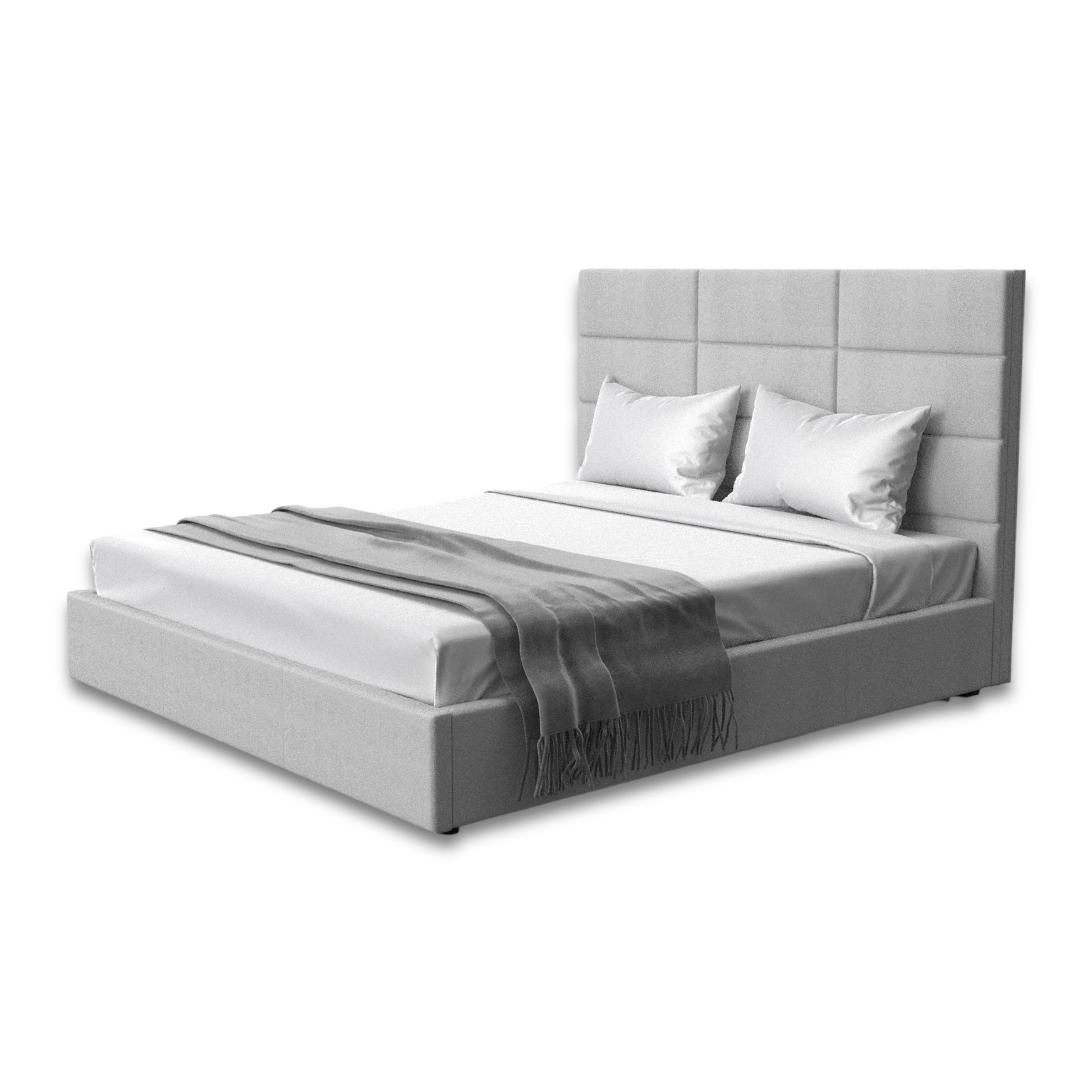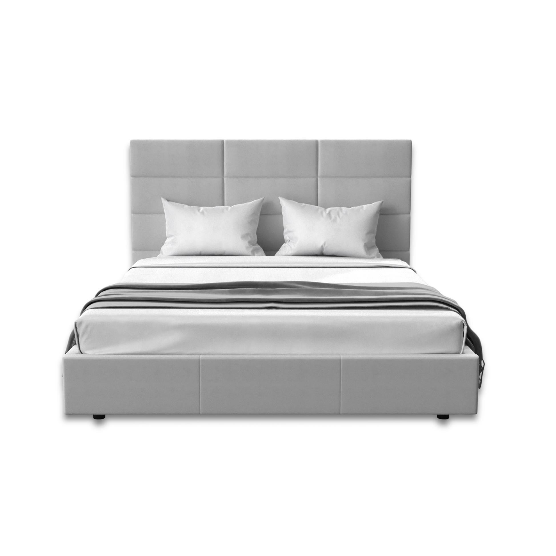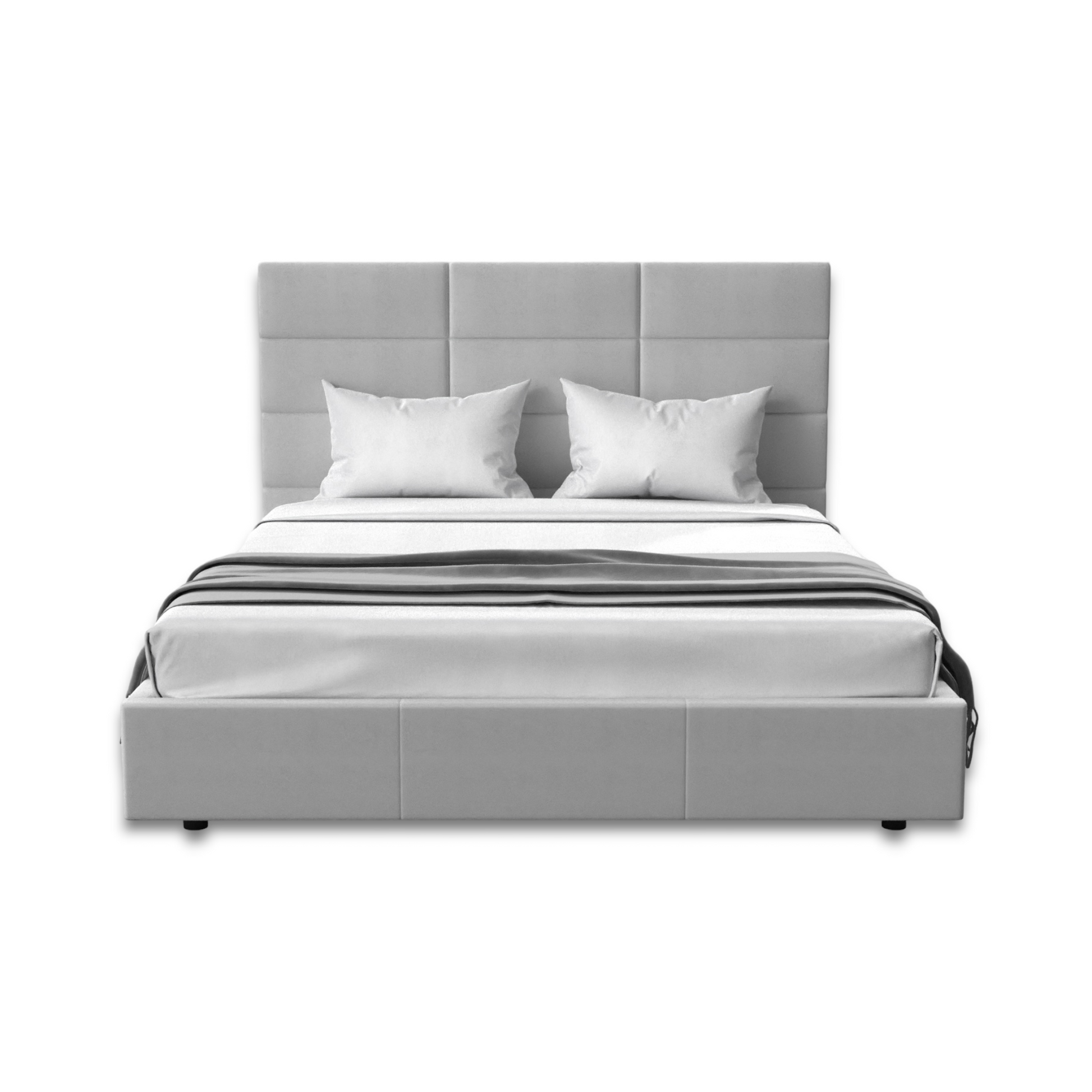 moderne et élégant facile à combiner avec n'importe quel produit plate-forme en bois pour poser un matelas entièrement recouvert de tissu microsuède gris clair tête de lit avec motif rectangulaire disponible en taille King et Queen |
