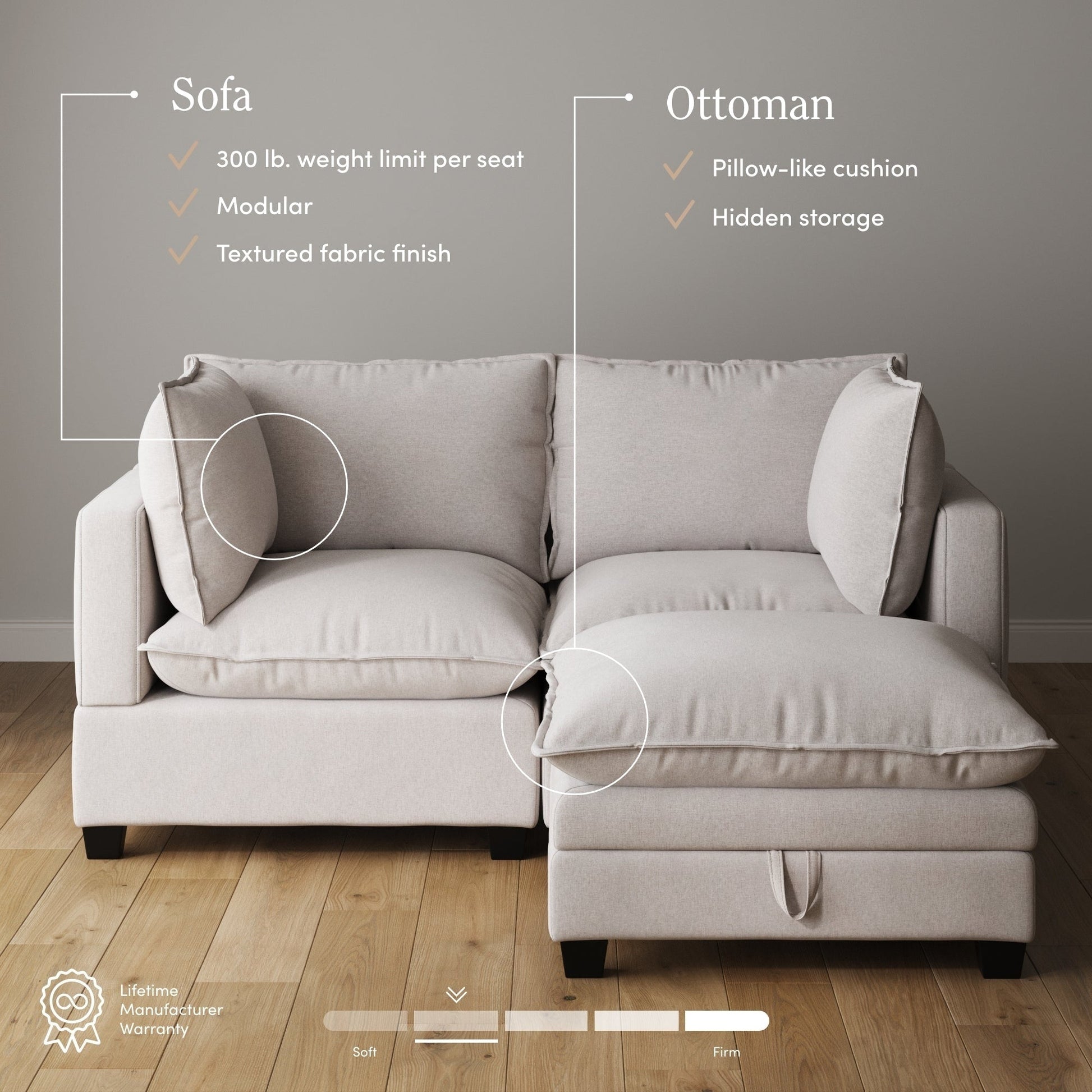 - Pair it with the Chelsea cloud sofa and ottoman collection to transform your living room into cozy haven.