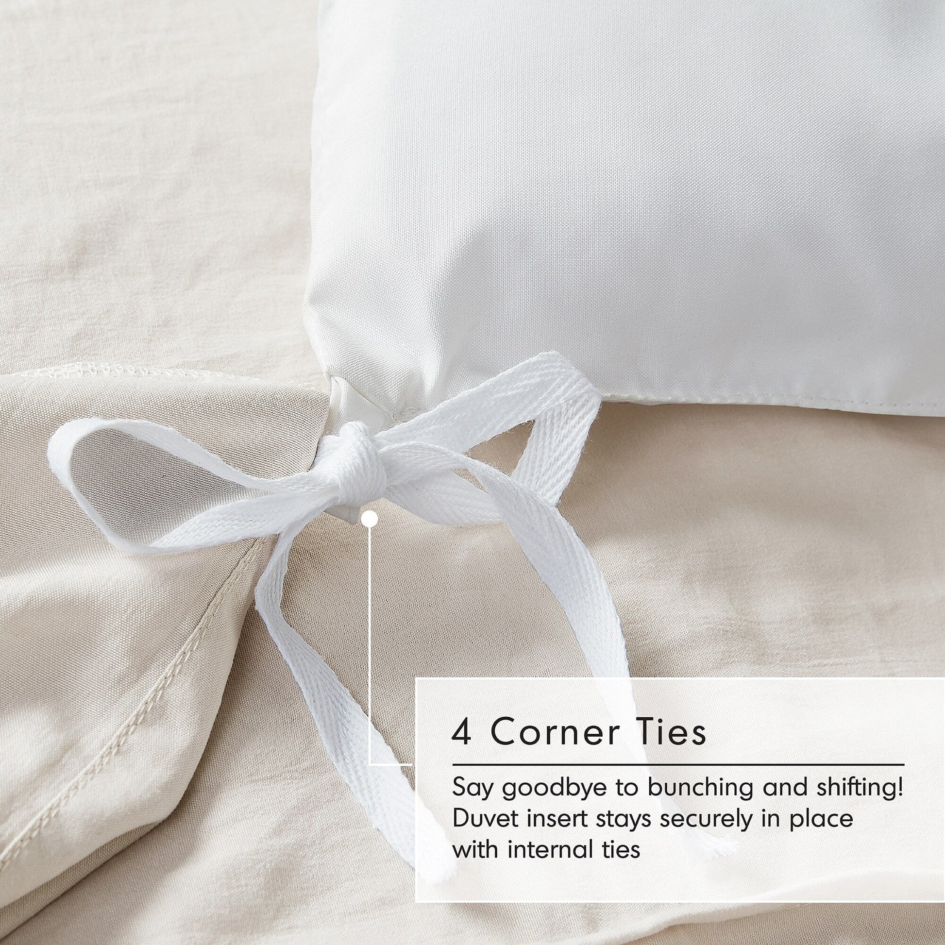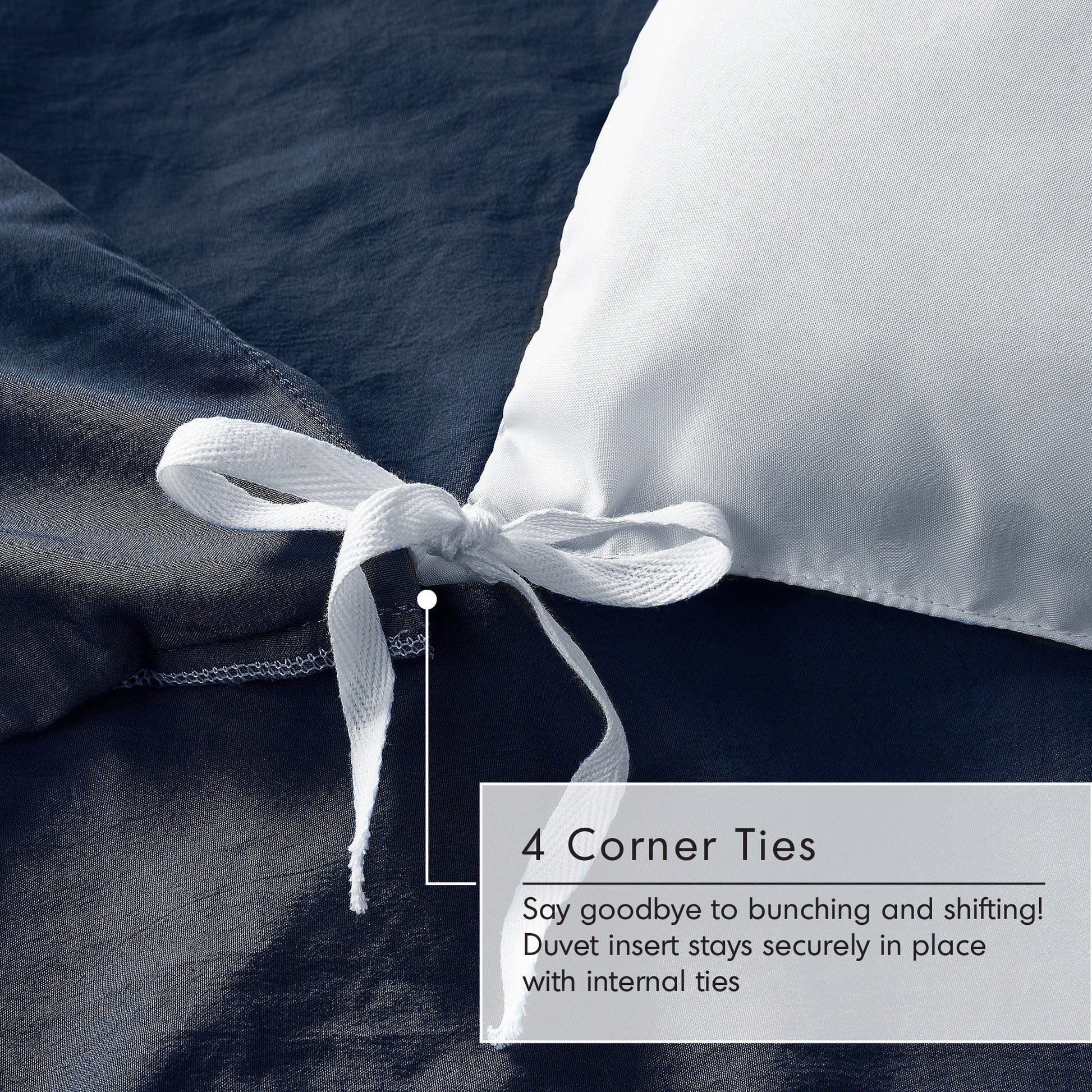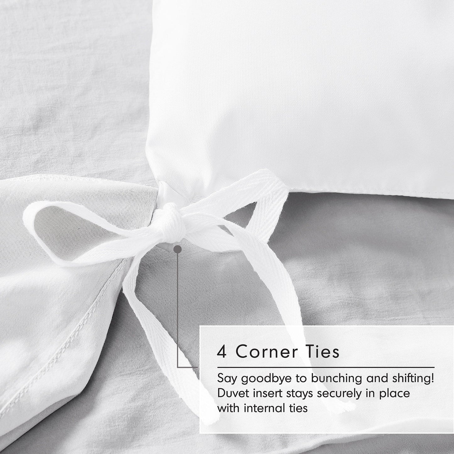 - Designed with 4 inside corner ties and a button closure to keep your duvet insert (not included) secure, preventing any bunching or shifting